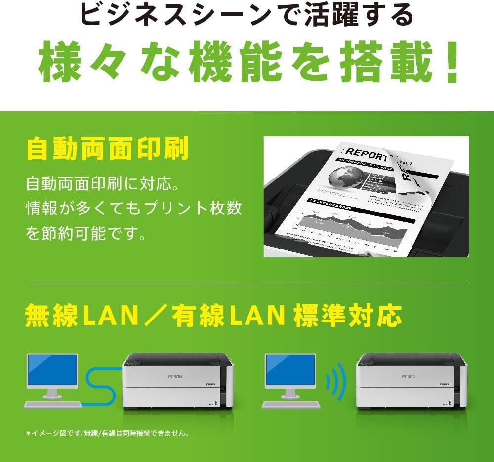 1年間の大容量インクボトルのための十分なインクは、消耗品の購入と交換の手間を減らします各インクのボトルはモノクロで約6,000ページを印刷できます。複数のユニットと共有することもできます