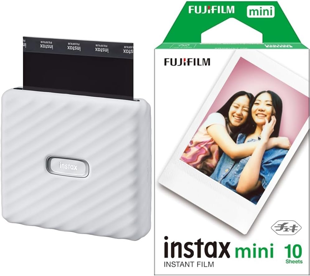 Fujifilm Instax Mini JP 1ワイドフォーマットスマートフォンプリンターInstaxリンクワイドアッシュホワイトリンクワイドホワイト&インスタントカメラフィルム10ピース
