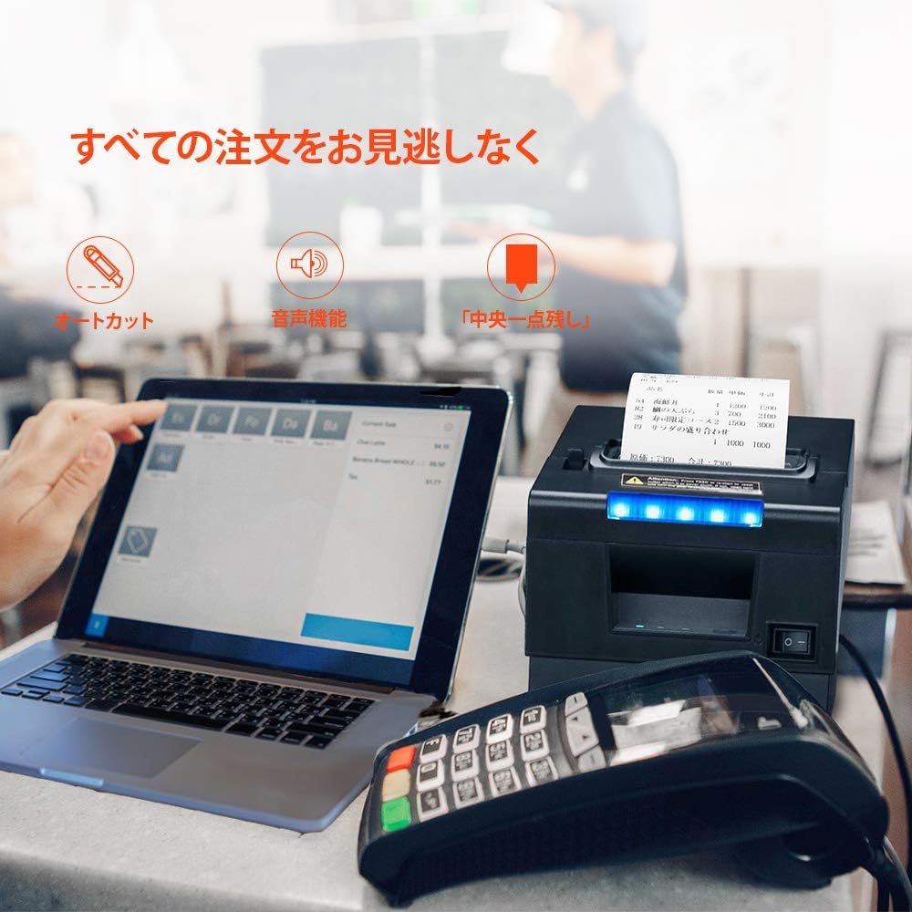 迅速な印刷、大容量、自動カッター:この領収書プリンターは、効率的な作業のために日本の織機プリントヘッドを採用し、1秒あたり最大11.8インチ(300 mm)までの高速で印刷できます。さらに、紙の変化の頻度を減らすために、作業効率を改善するために、大規模な紙のロール(2.3インチ(58 mm)および3.1インチ(80 mm)のサーマルペーパー)と互換性があります。