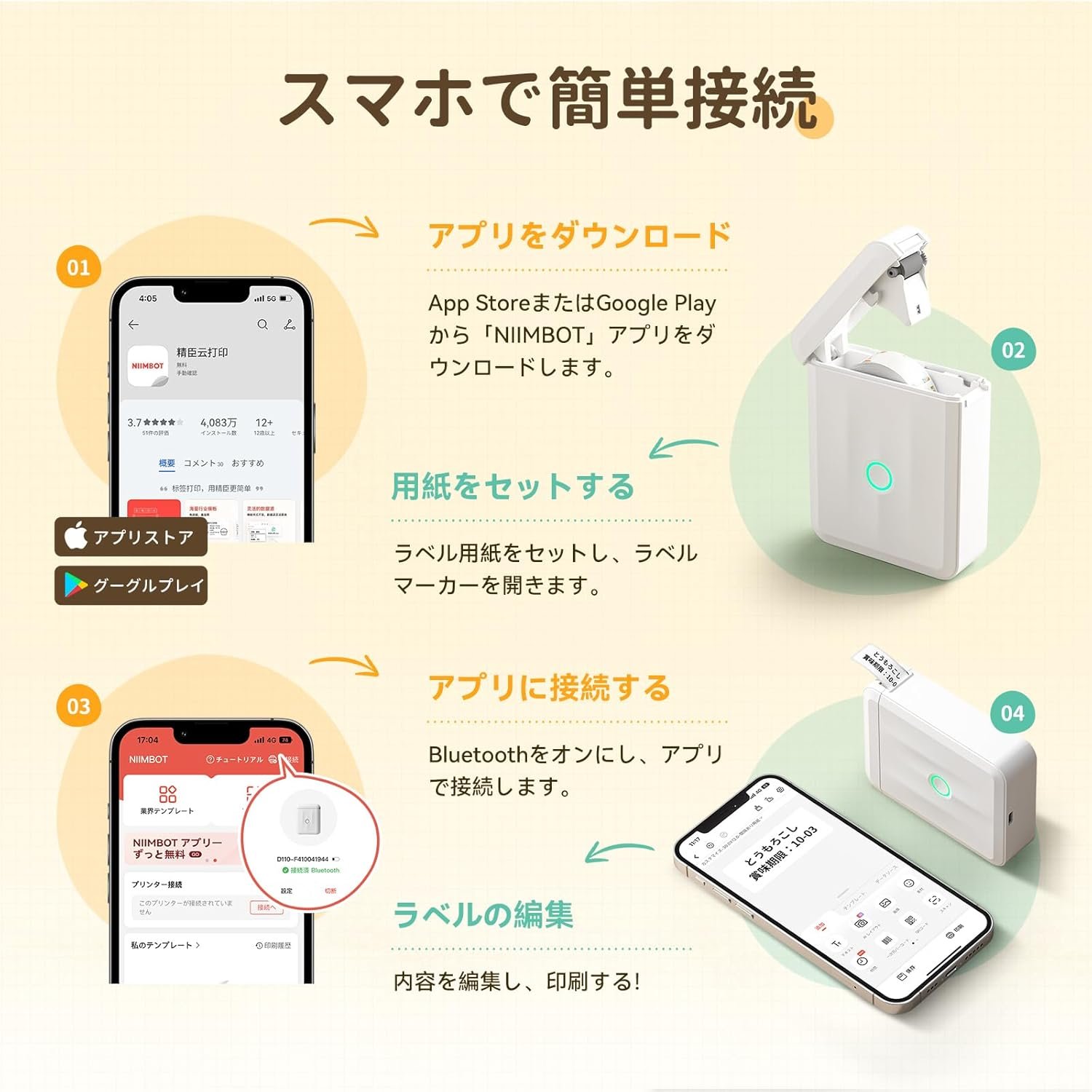 複数のデバイスと互換性がある:このラベルプリンターは、AndroidやiOSなどのスマートデバイスと互換性があるため、ドライバーをインストールする手間なしで簡単に接続できます。 iPhone、Samsung、Xiaomi、Sony、Pixelなどのスマートフォンはすべてサポートされています。注:Windows、Macなどのコンピューターをサポートしていません