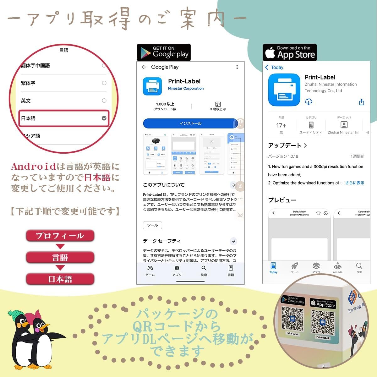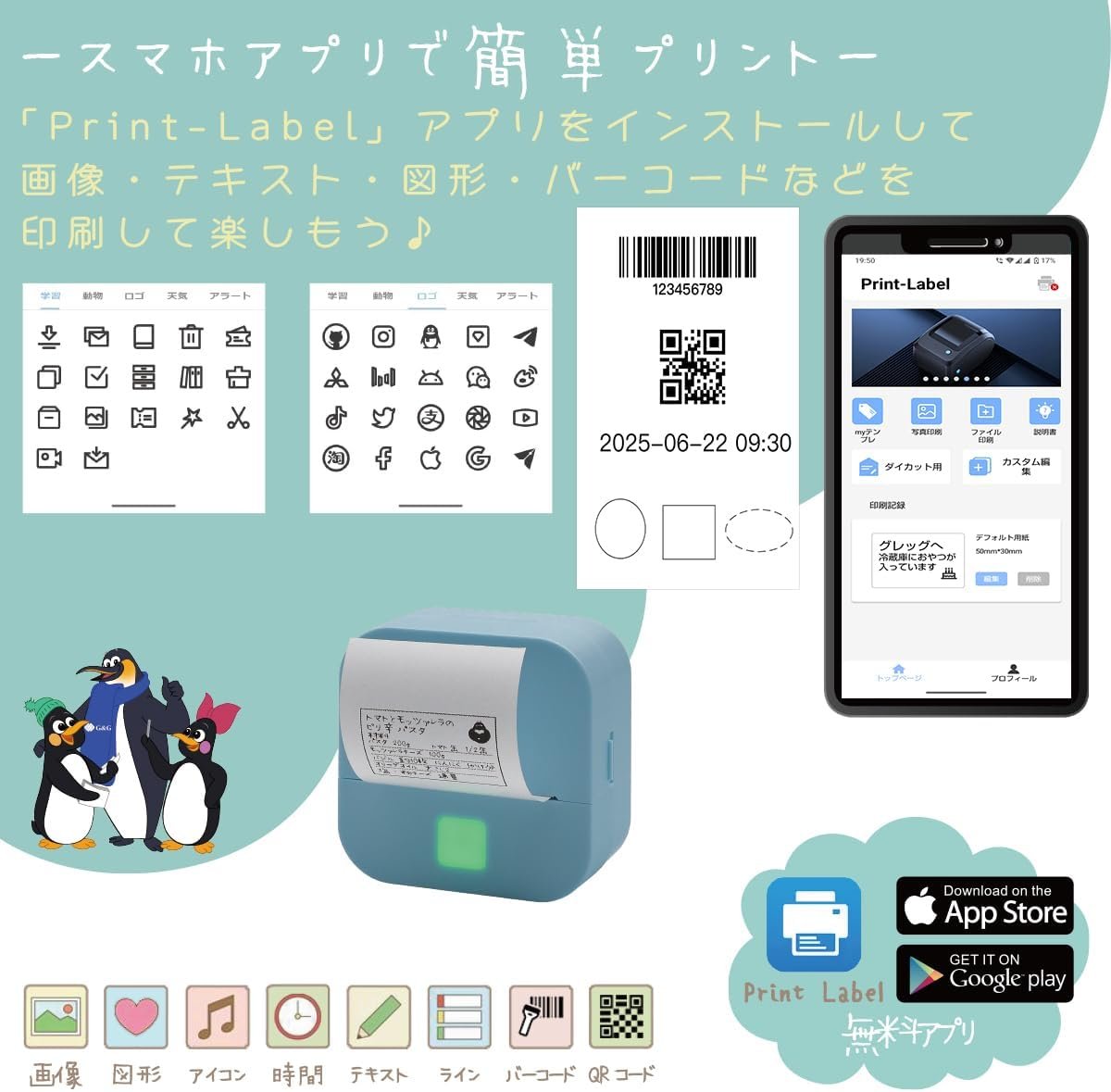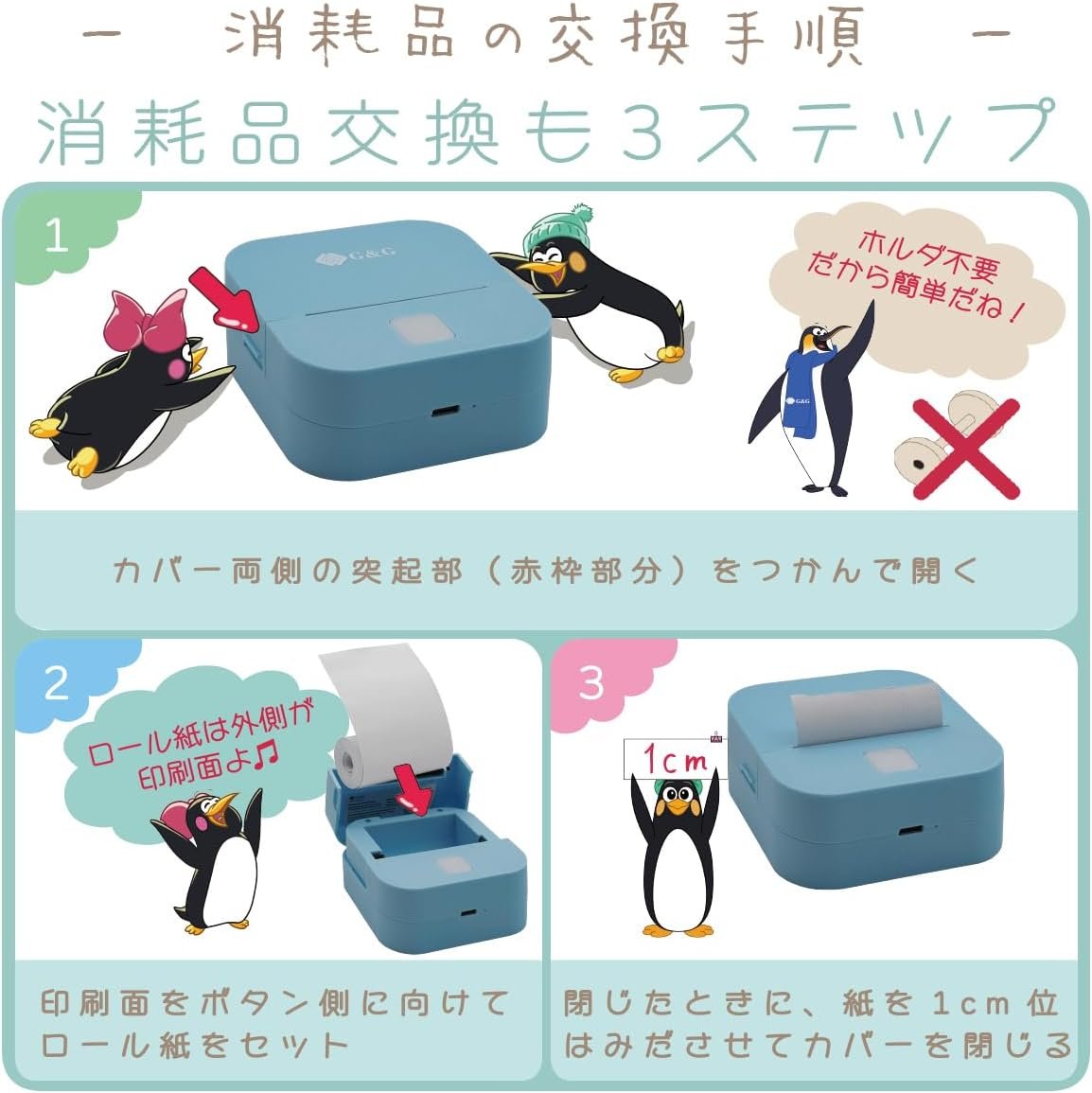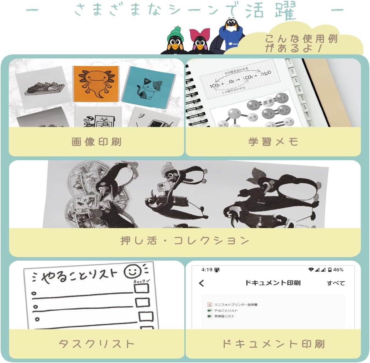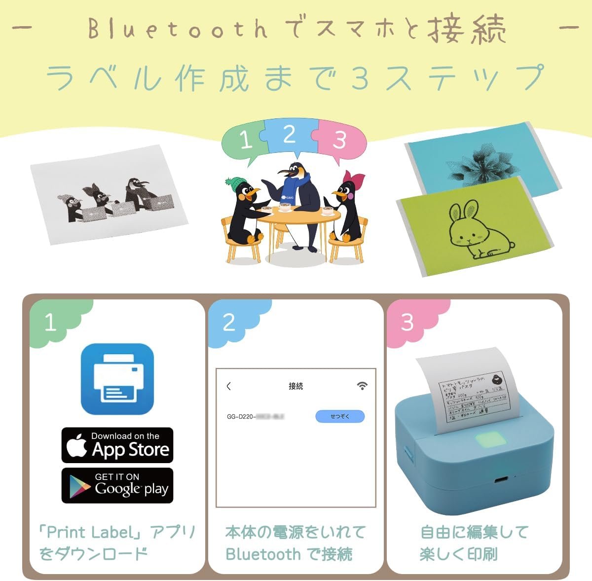 Ninestar G&Gサーマルプリンター、GG-D220、サーマルペーパー(3紙 / 1ステッカー)、スマートフォン互換、ミニモバイルプリンター、ポータブル、ミニサーマル、コンパクト、フォトプリンター、Bluetooth接続、