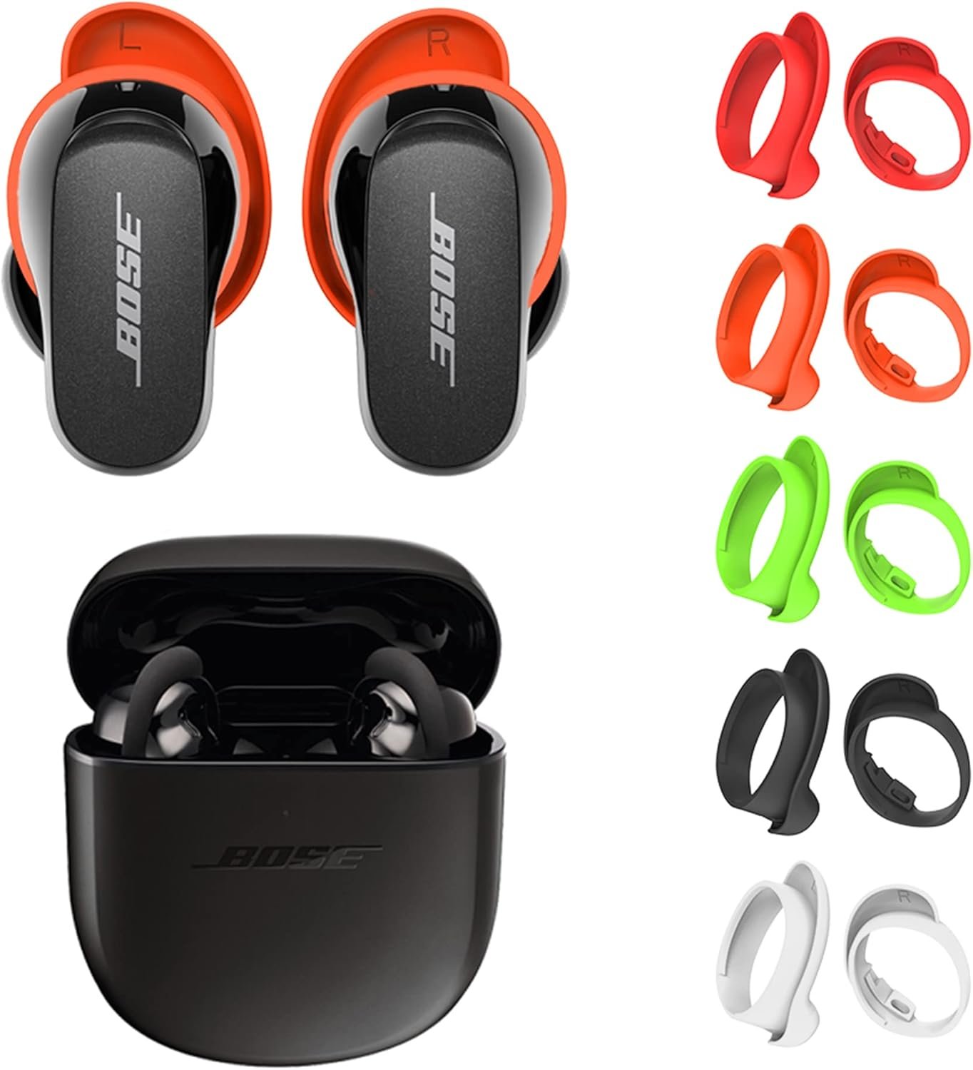 セルチョン【5ペア / QuietComfort Earbuds II Anti Slip Drop Proof Bose QuietComfortイヤホンIIイヤピースイヤホンキャップミディアム5色(黒、白、赤、オレンジ、緑)のためのイヤチ