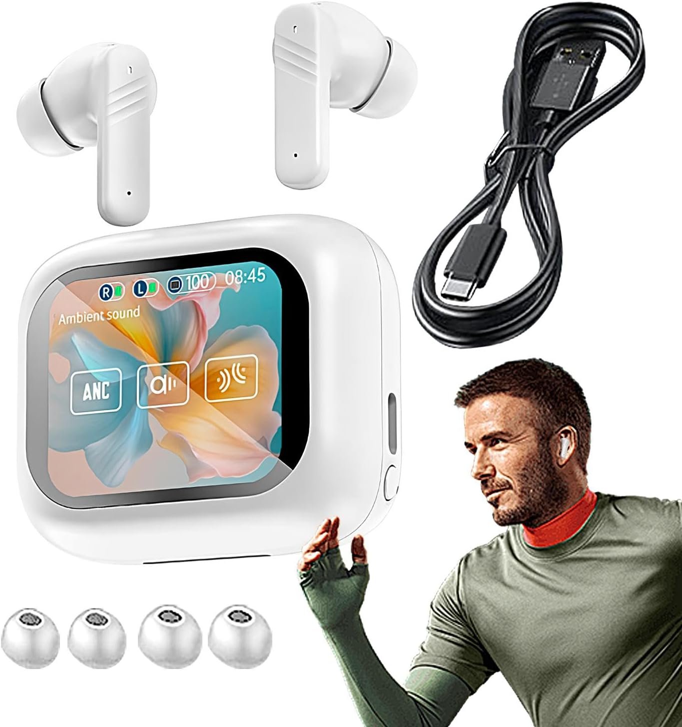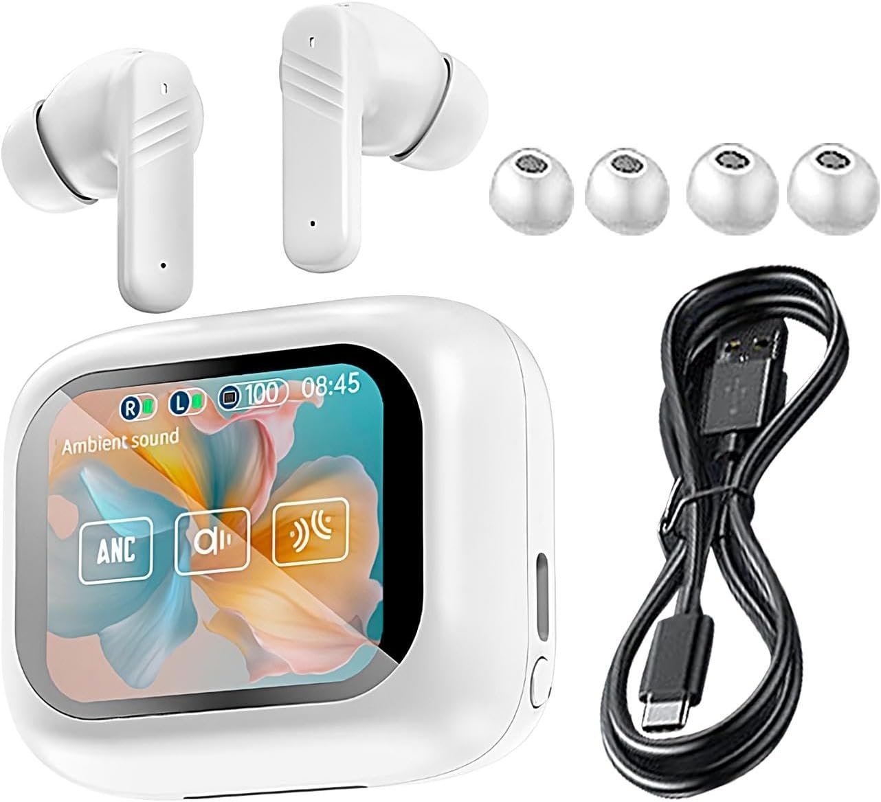 ワイヤレス イヤホン – ゲーマー コードレス イヤホン、ワイヤレス イヤホン、イヤホン、ワイヤレス、カラー スクリーン タッチ コントロール付きワイヤレス ヘッドフォン、ワイヤレス充電ケース付きインイヤー イヤホン