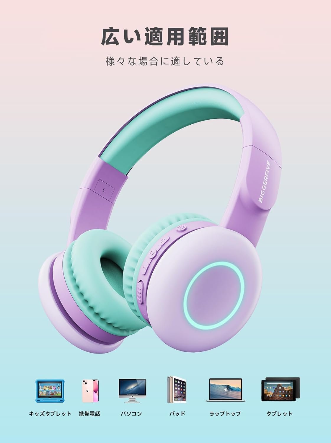 キッズヘッドフォン:これらは、子供の耳向けに設計された最新のファッショナブルなヘッドフォンです。 BiggerFiveヘッドセットにより、プレミアムステレオオーディオ品質とクリアマイクコールが可能になります。長い旅行、飛行機、ウェブミーティング、宿題、アニメーション、映画、音楽など、より活気のある楽しい体験が得られます。あなたの子供はそれを気に入るはずです