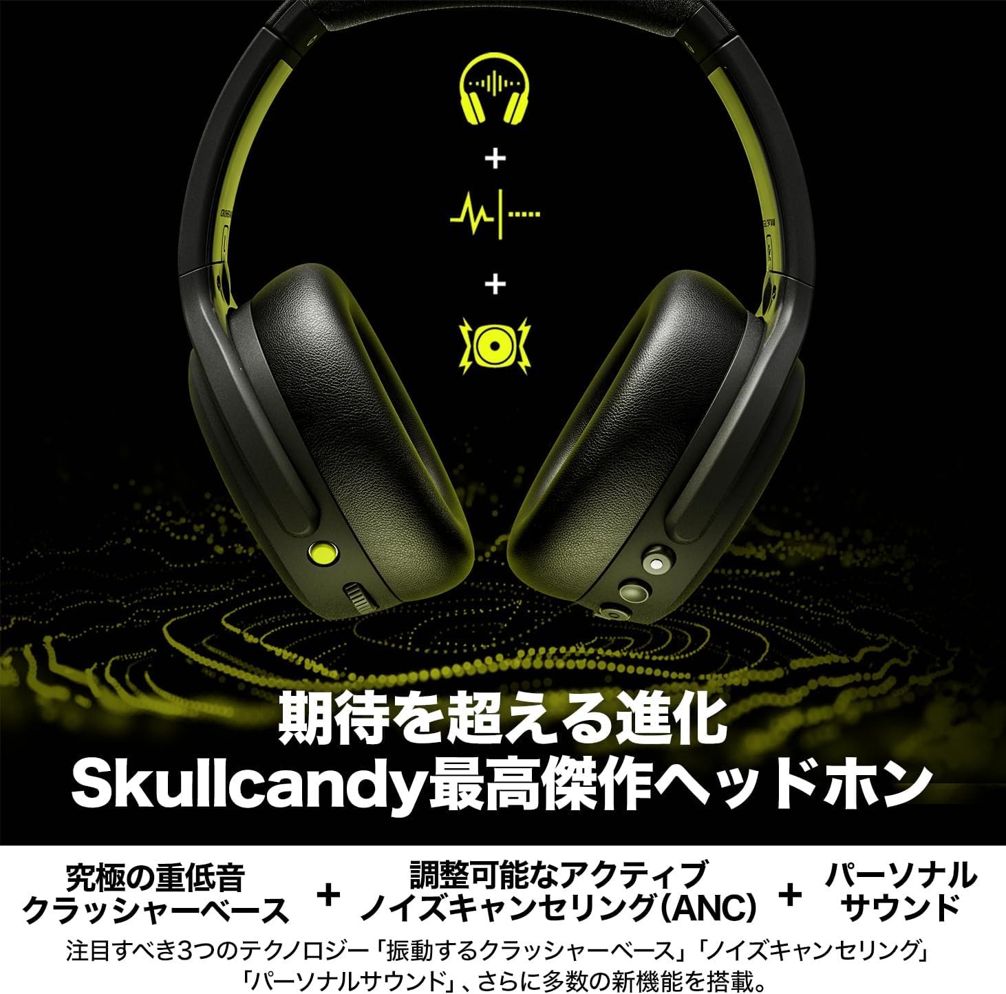 Skullcandy公式ストアクラッシャーANC2ノイズキャンセルキャンセルディープベース付きワイヤレスヘッドフォンとマイクとオリジナルステッカー付きサブウーファー
