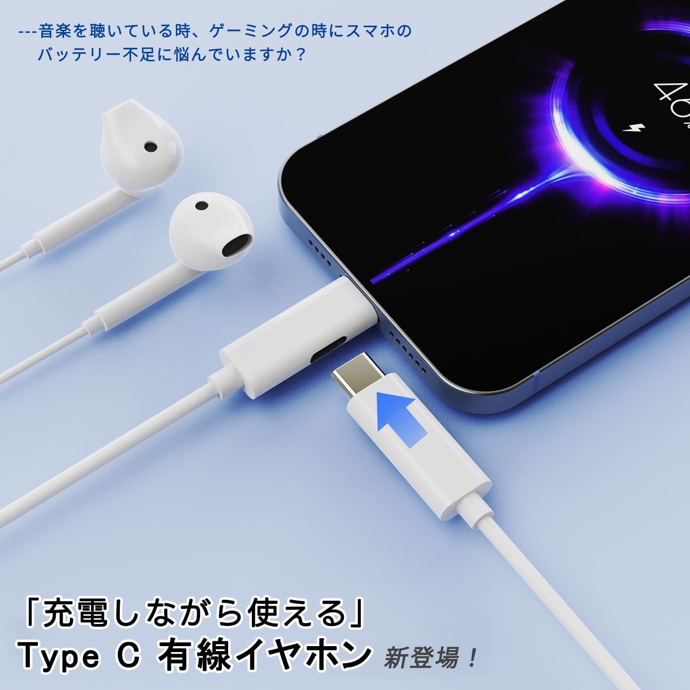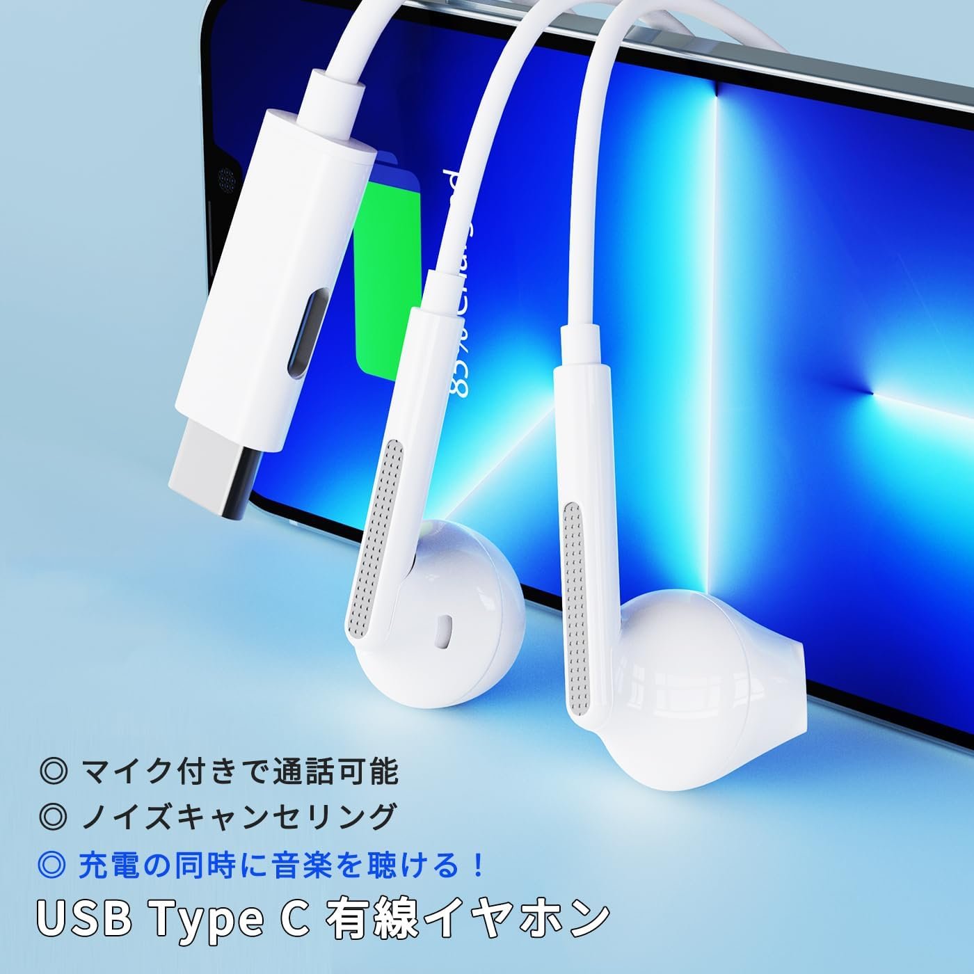 MIC /充電可能なUSBタイプCイヤホン [New] – スマートフォンを充電しながら音楽を楽しんでください。