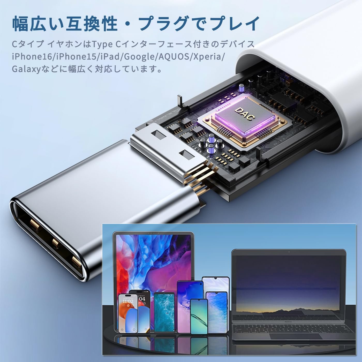 (幅広い互換性と切断)Cタイプのイヤホンは、iPhone 16、iPhone 15、iPad、Google、Aquos、Xperia、Galaxyなど、タイプCインターフェイスを備えた幅広いデバイスと互換性があります。イヤフォンマイクは、高品質の素材で作られており、内側の銅ワイヤと外部銅ワイヤと外部の銅ワイヤと、緊急の強度を確保するために、外部の銅ワイヤと外部の銅ワイヤが確保されています。