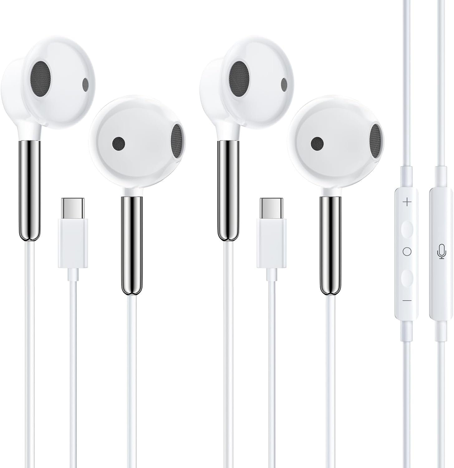 USB C イヤホン ストリーミングイヤホン Apple iPhone 17/16 イヤホン ストリーミングタイプC マイク&コントロール付き USB C イヤホン iPhone Air 17 16 Pro Max、16e、15、iPad Pro、Galaxy、Pixel用 2個パック