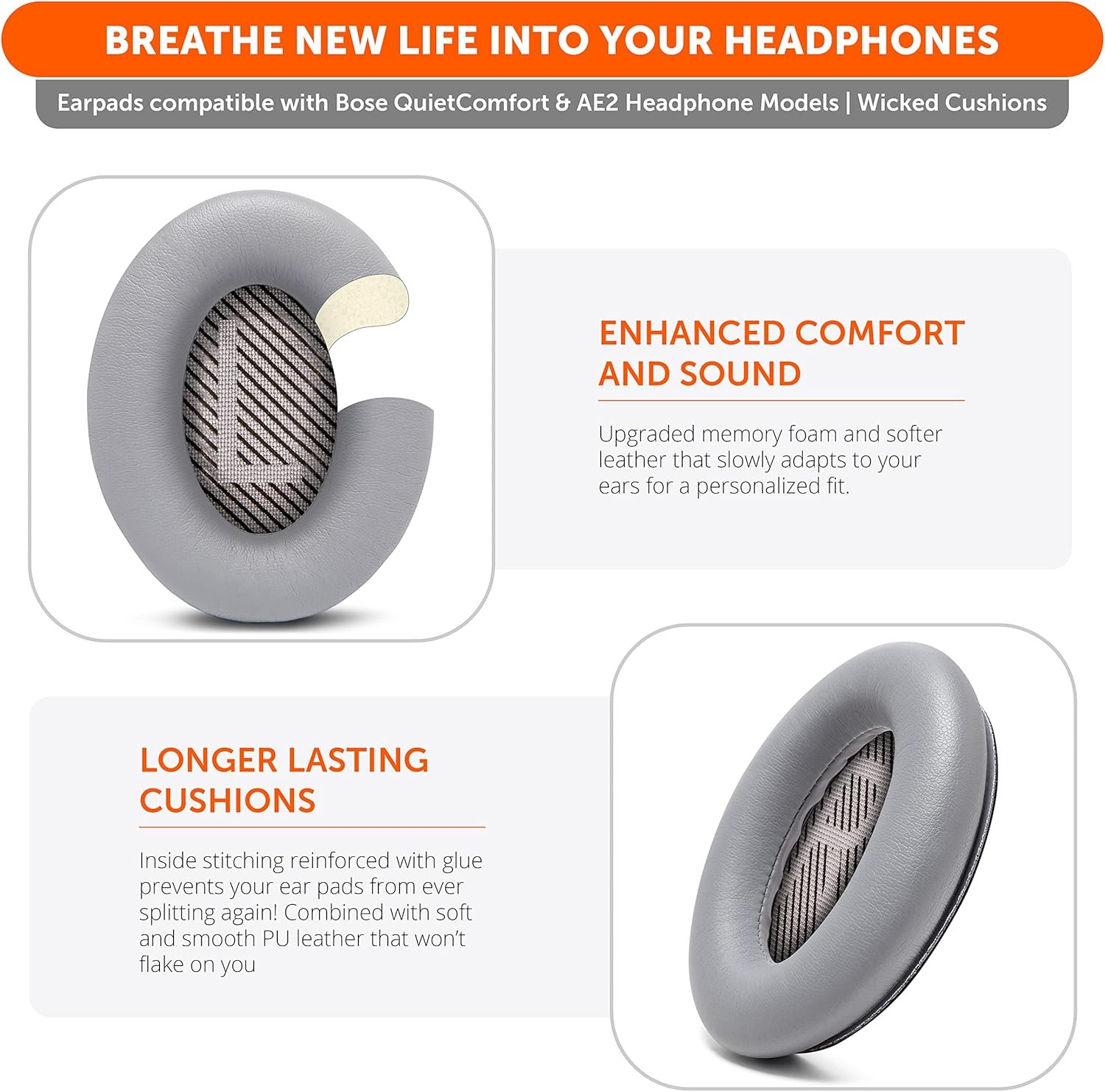 WC Wicked クッション アップグレード交換用イヤーパッド Bose QC35 & QC35ii (QuietComfort 35) ヘッドフォン用 – 柔らかいレザー、贅沢な低反発フォーム、極厚、極度の耐久性 |銀