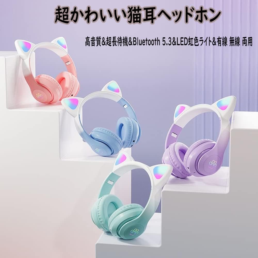 YaPanda かわいい猫耳 Bluetooth ヘッドホン 超長時間待機 LEDライトアップ ワイヤレス 軽量 通気性 柔らかい 折りたたみ式 サイズ調整可能 マイク付き 有線 無線 多機種対応