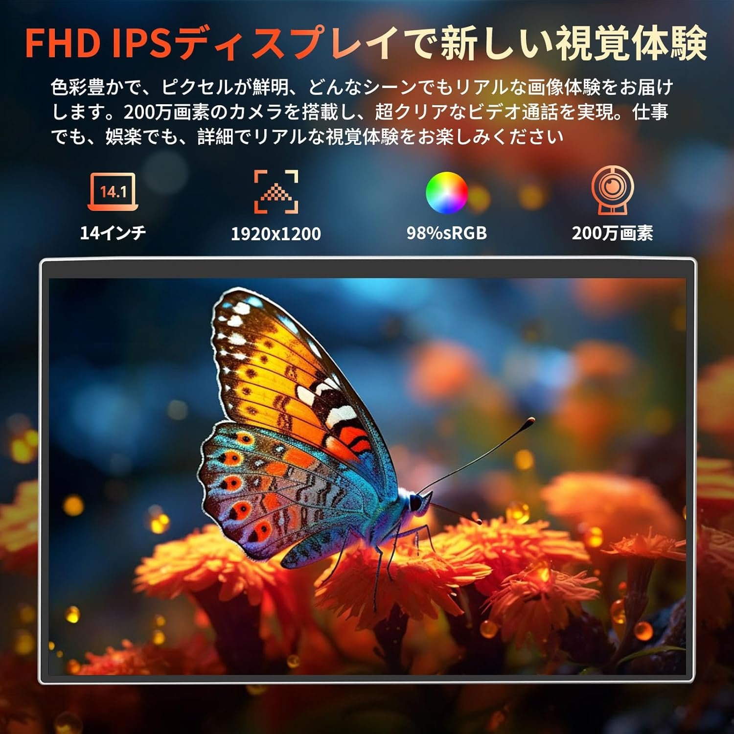 (高解像度ディスプレイ)92%の画面を占める14インチの1920 x 1200フルHD IPS画面を装備しています。狭いベゼルは、鮮やかで明確なビデオ体験のためのより広い視野を提供します