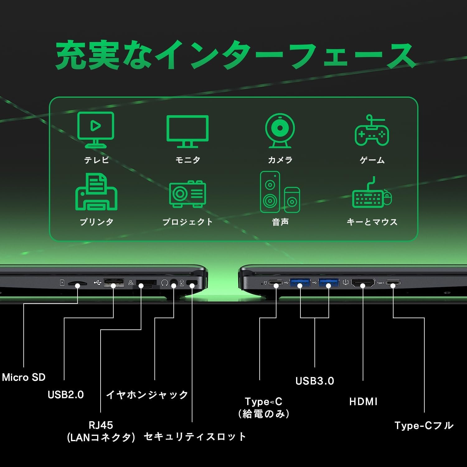【IPS 1920 x 1080P高精細液晶画面+高速ネットワーク】このノートパソコンは15.6インチの大型IPS非光沢ディスプレイを搭載し、高い視認性と快適な操作性を実現し、長時間パソコンの前で作業する方を強力にサポートします。 16:9 の大きな画面比率により、14 インチのディスプレイで画面の内容や文字が見やすくなります。また、狭額ベゼルによる高い没入感を実現し、フルHD 1920*1080P画質出力で映画やドラマなどの映像コンテンツも楽しめる15.6型ノートパソコンです。学生のレポート、ビジネス Excel データ分析グラフ、Web ブラウジング、ビデオ視聴、オンライン ショッピングなどに最適です。高速WiFi 6とBluetooth 5.2を搭載。高速で信頼性の高いワイヤレス接続テクノロジーにより、データの送受信がより速く、より安定します。オンラインダウンロードの待ち時間を節約し、Youtubeビデオを視聴できます。