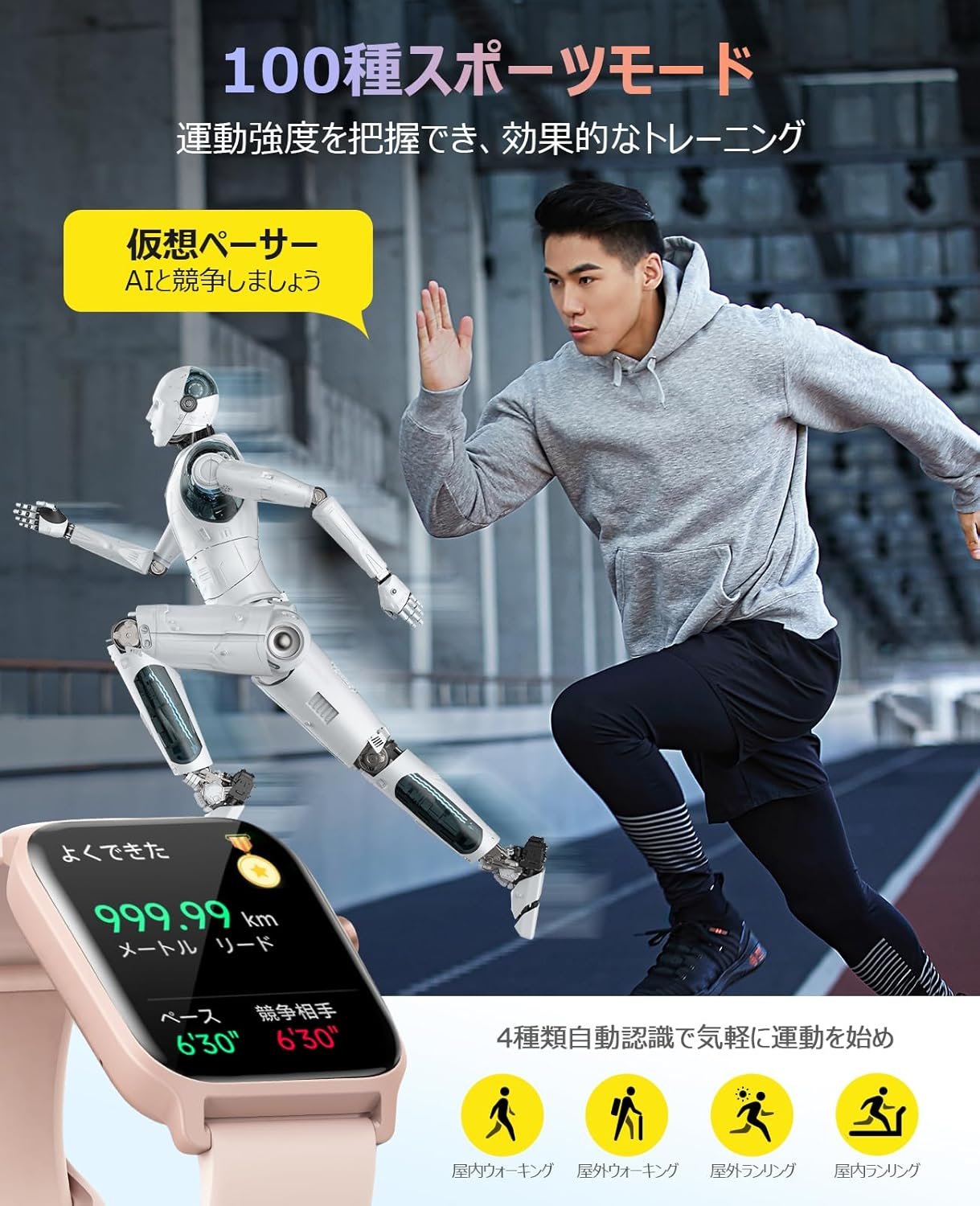 基本的なエクササイズ、ボールゲーム、レクリエーションスポーツ、アイススポーツ、ウォータースポーツ、極端なスポーツなど、100を超える運動モードから選択できます。追加では、屋外のランニングとウォーキングの自動検出もサポートしています。