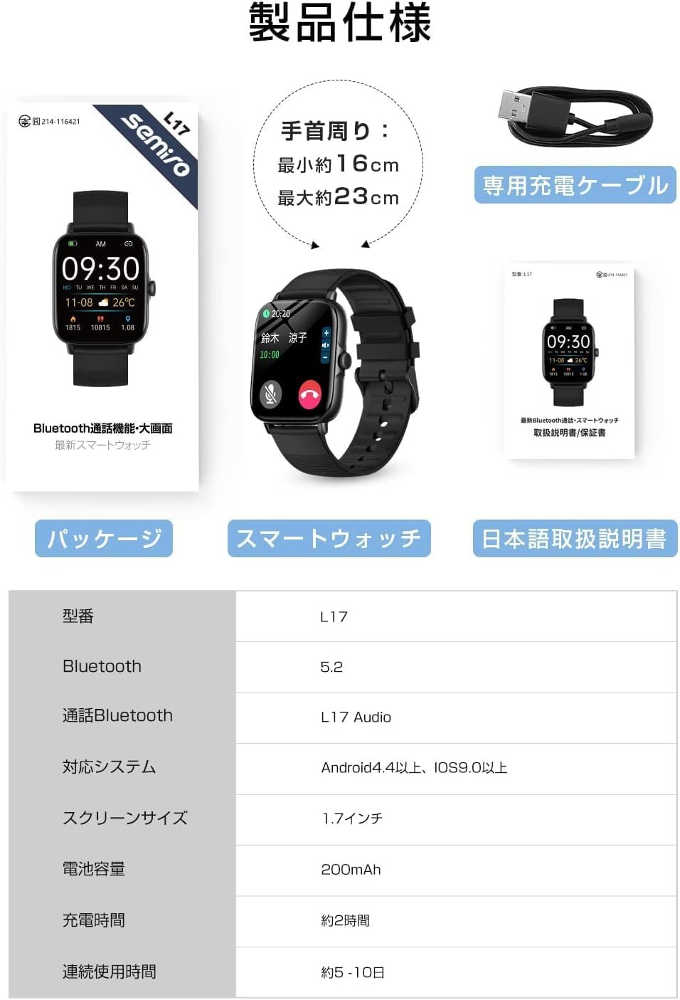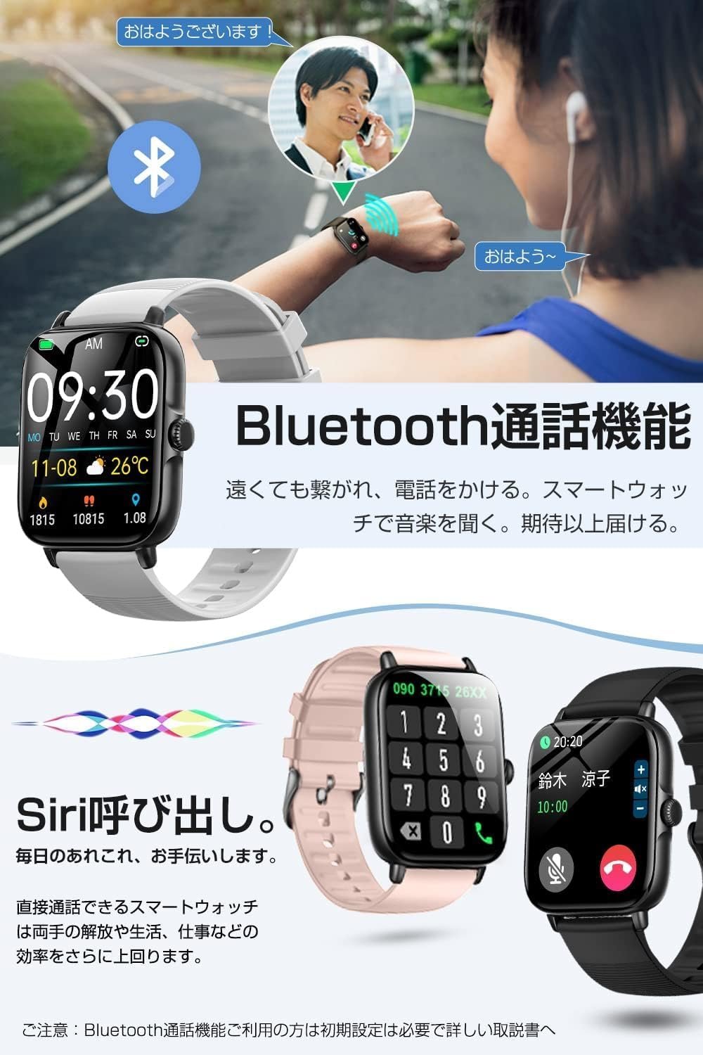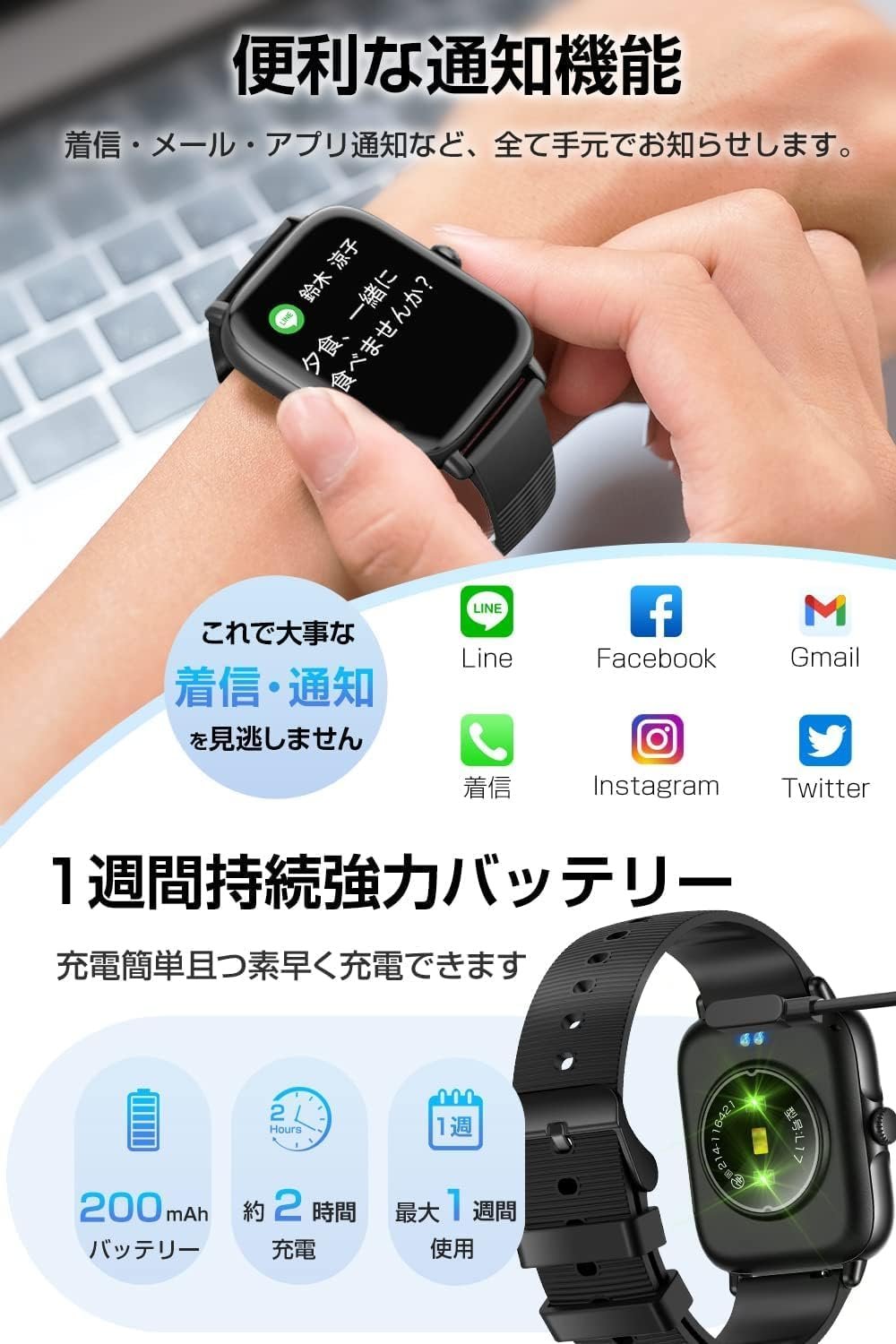 【Bluetooth通話&メッセージ通知対応】 通話機能付きスマートウォッチは、手元で着信応答・拒否が可能です。Bluetooth通話対応で、スマホを取り出すときに会話できます。 LINE・SMS・Instagram・Facebook・Twitterなどのアプリ通知に対応し、機能通知付きスマートウォッチとしてビジネスにも便利。 iPhone Android対応スマートウォッチなので、あらゆるスマートフォンで使用可能。仕事中・運動中でも大事な連絡を逃しません。