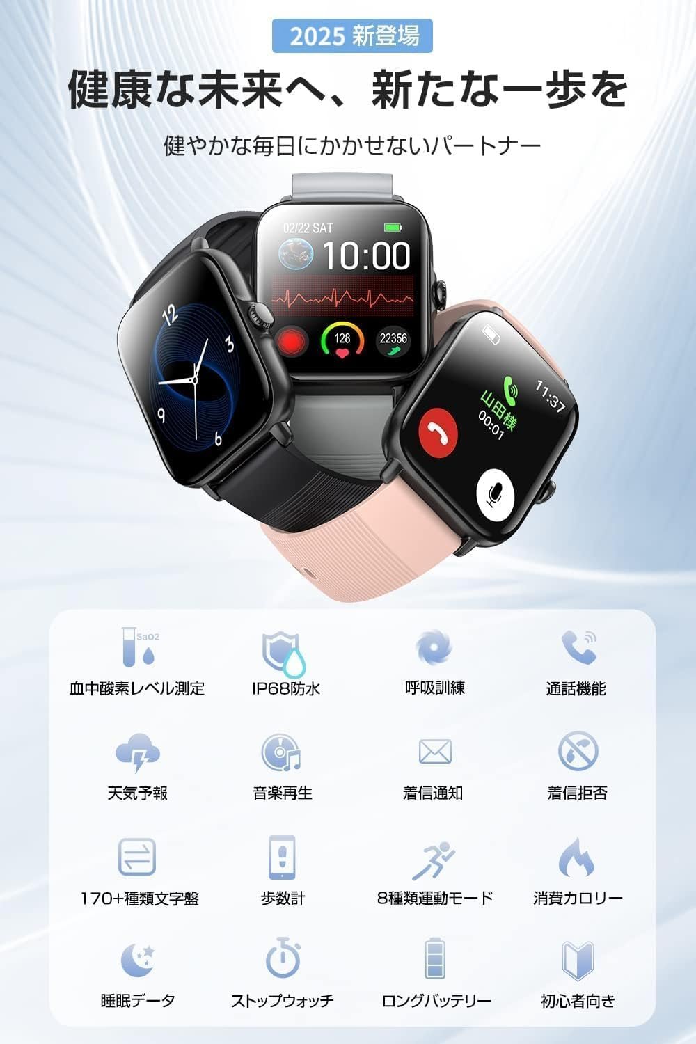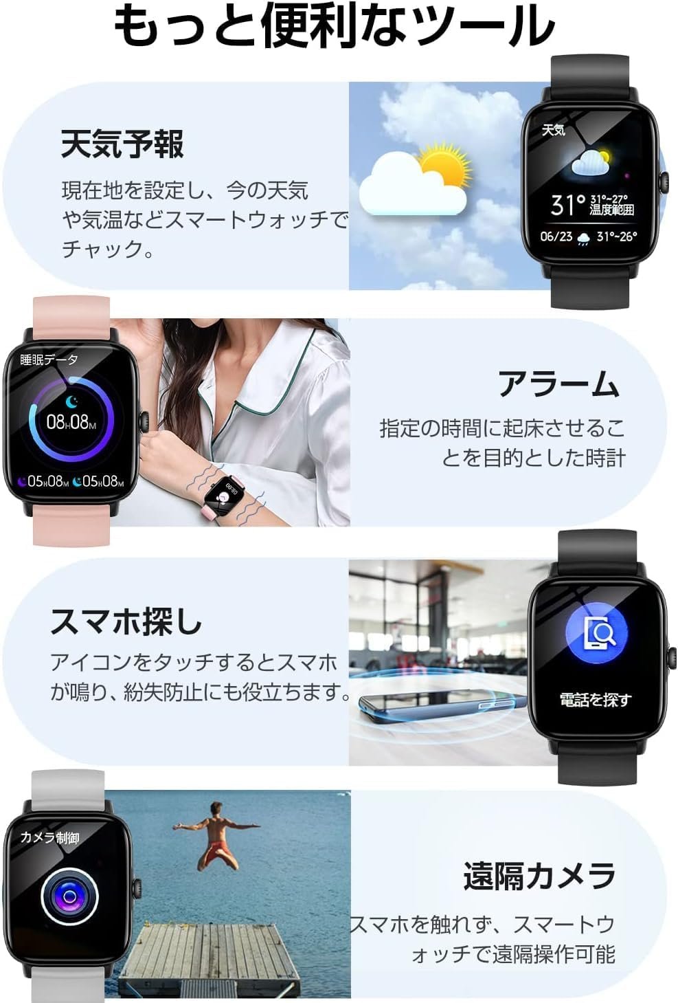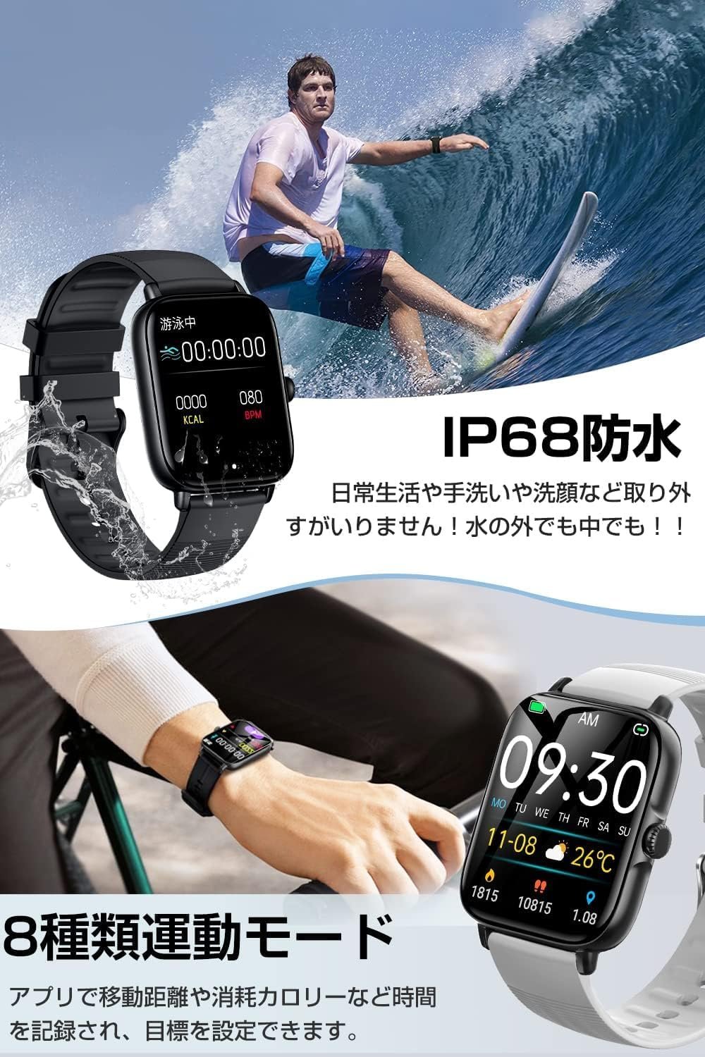 【多機能&IP68防水仕様】 多機能Bluetoothスマートウォッチは、目覚まし時計、天気予報、音楽再生、遠隔撮影、スマホ機能探しなどを搭載。 IP68防水スポーツウォッチなので、手洗いや汗、雨の日でも安心。 アウトドア・スポーツ・旅行用スマートウォッチとして、あらゆるシーンで活躍します。