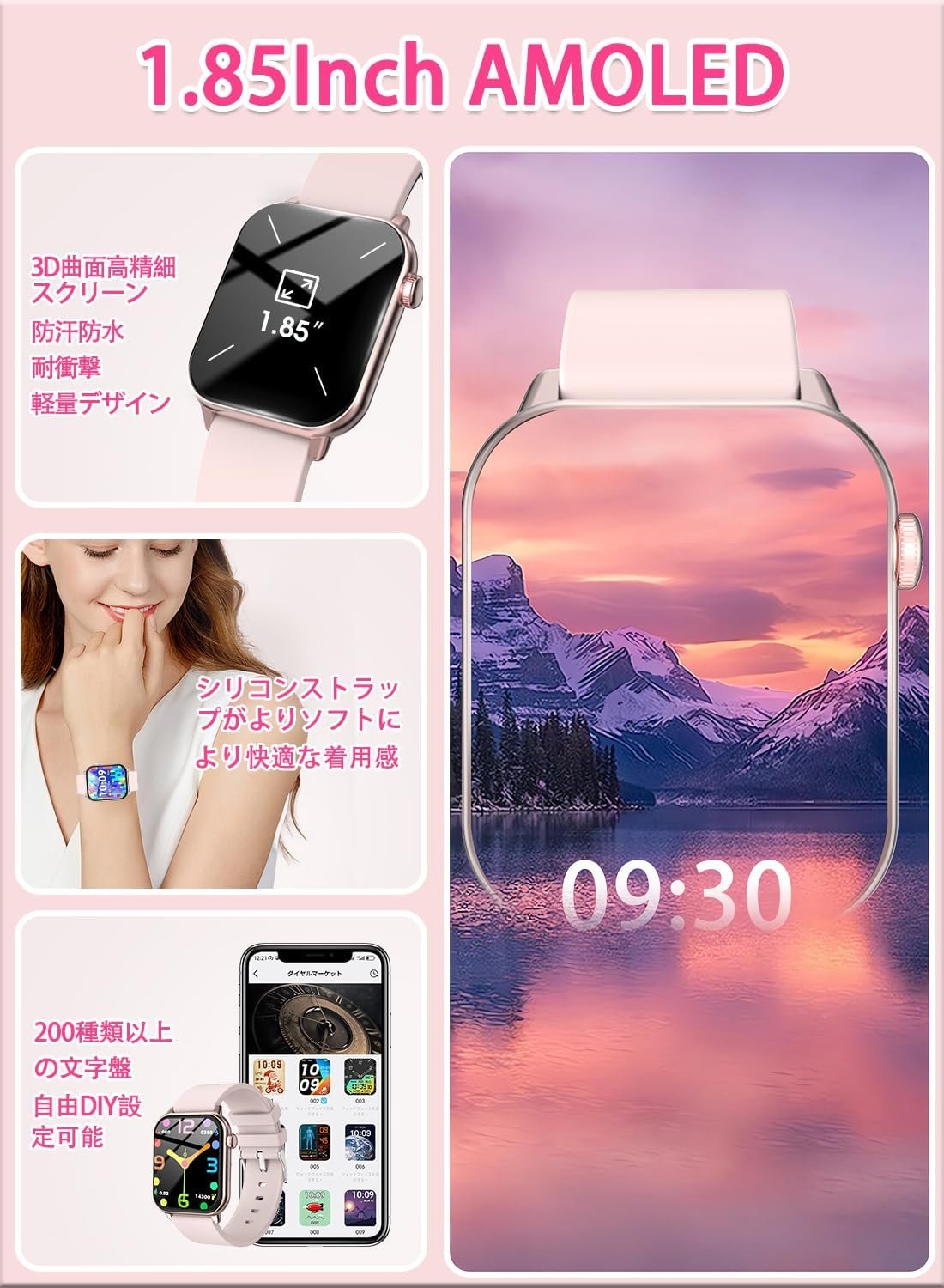 スマートウォッチ Ios/Android対応 2025年初売り 1.85インチAMOLEDスマートウォッチ IP67防水 メッセージ通知 Bluetooth5.3通話 スポーツウォッチ 100種類以上運動モード 長持ち
