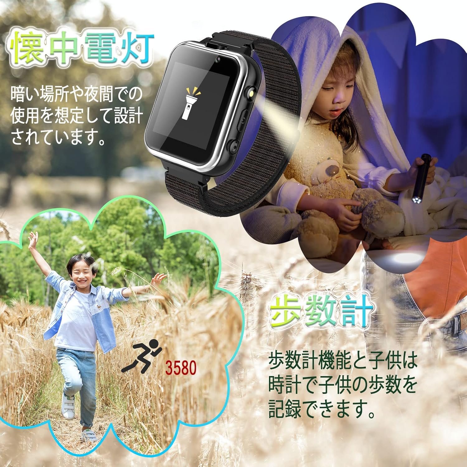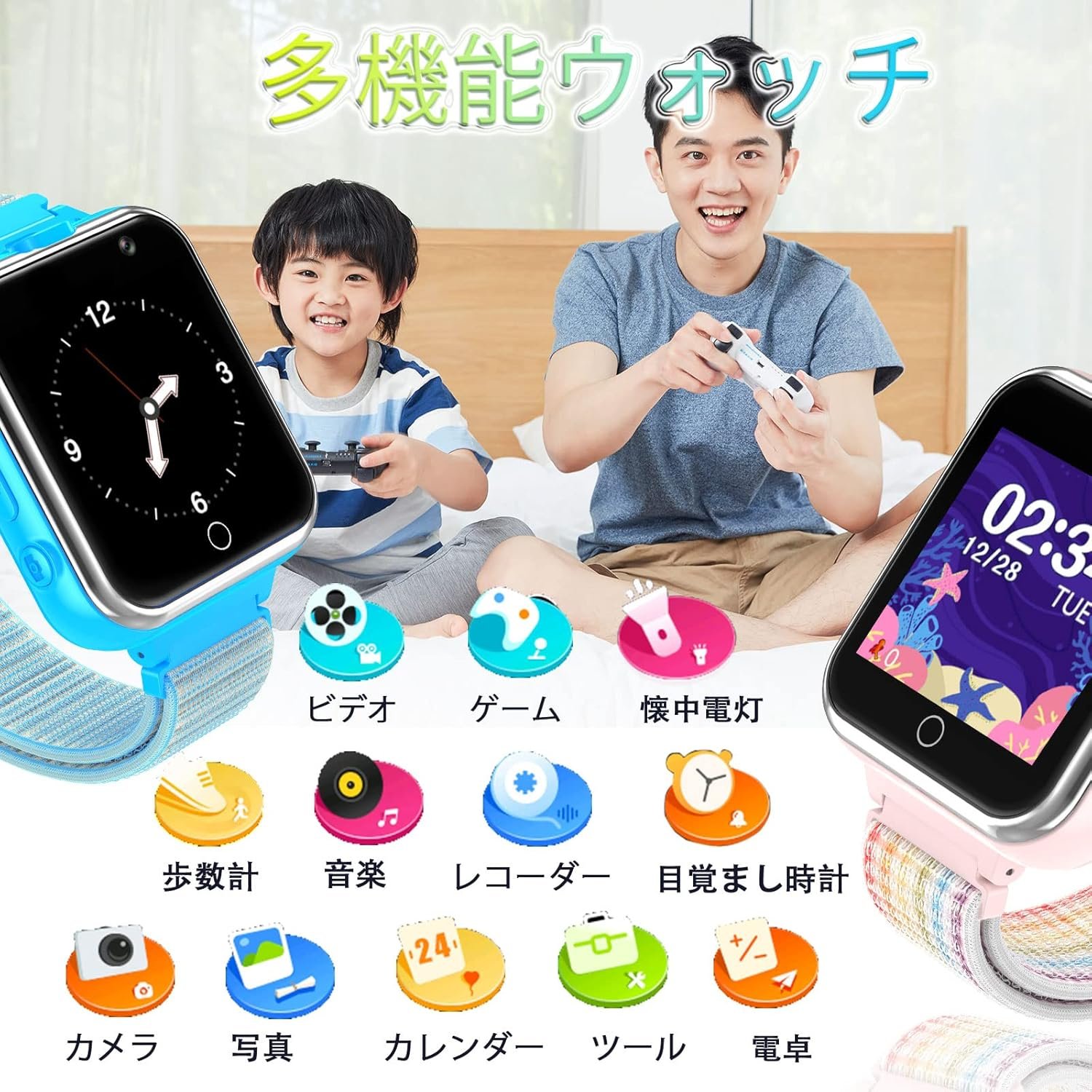 多機能キッズスマートウォッチ:このスマートウォッチは、4〜15歳の男の子と女の子に最適です。音楽プレーヤー、24種類の趣味ゲーム、2 HD回転カメラ、歩数計、学校モード、12個のデジタルとアナログの時計、録音、懐中電灯、目覚まし時計、ペドメーター、電卓、カレンダー、壁紙などなどの実用的な機能があります。