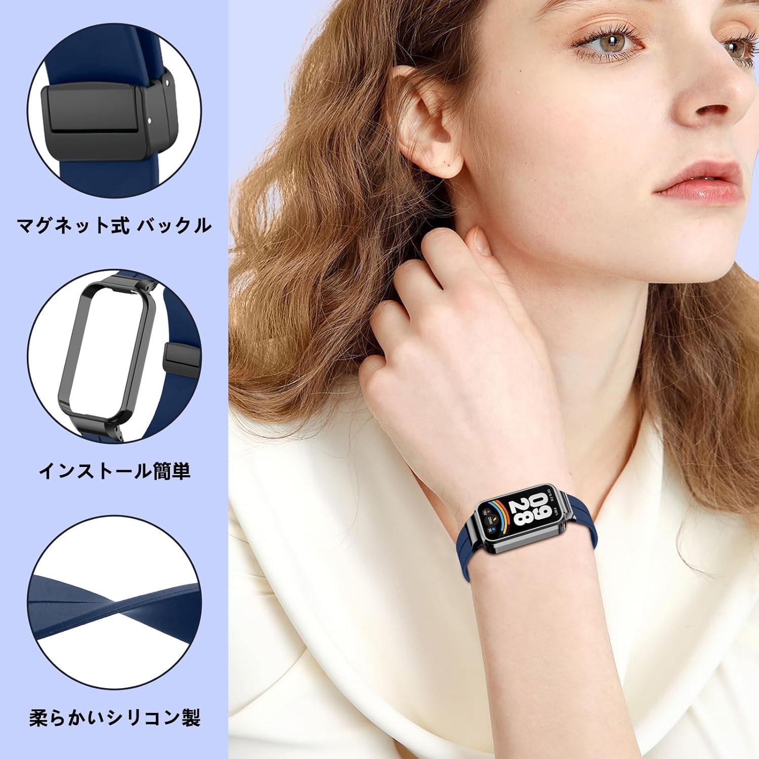 – さまざまな色で利用でき、スマートウォッチをパーソナライズし、日常生活の気分や衣装に合わせて自分の好みを強調してください。