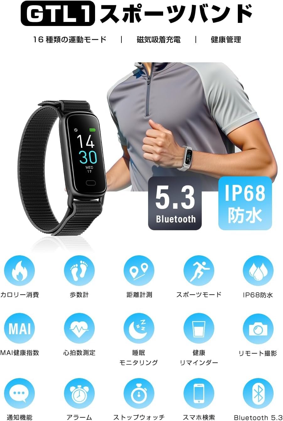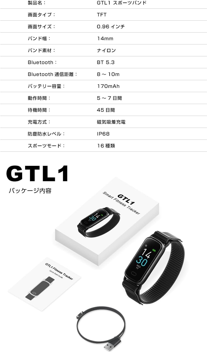 (サポートヘルスマネジメント /レコードエクササイズデータ)GTL1スマートブレスレットは、ビジネスや個人使用に関係なく人気が高まっている時計タイプです。メッセージ通知、燃焼カロリー、IP68防水、睡眠モニター、感傷的監視、着信コールガイダンス、座りがちなアラート、アラーム、日常生活など、日常生活で使用できるさまざまな機能があります。ランニングやサイクリングなどの16の異なるスポーツモードが装備されているため、運動習慣を記録および管理できます。 24時間の運動データを記録できます。ステップ、ケロス、カロリー消費量などをはっきりと表示できます。レコード番号はリアルタイムです。スポーツ愛好家にお勧めします。さまざまなセンサーが装備されているため、心拍数とカロリーを燃やすことができます