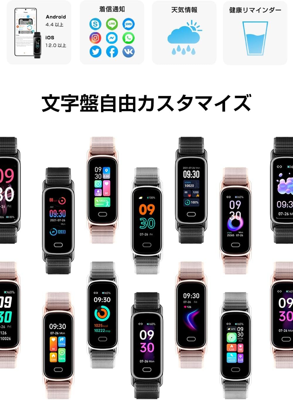 睡眠モニター、座りがちな警告:この時計は、深い睡眠と軽い睡眠を記録するだけでなく、専用アプリも睡眠状態を詳細に分析し、睡眠の質に合わせることができる睡眠のアドバイスを提供します。あなたの睡眠の質を正常に知ることは目に見えませんし、より良い睡眠意識と健康的な生活を送る方が簡単です。座っているときに警告を設定したときに、アプリが振動して通知します。より健康的な生活スタイルを提供します