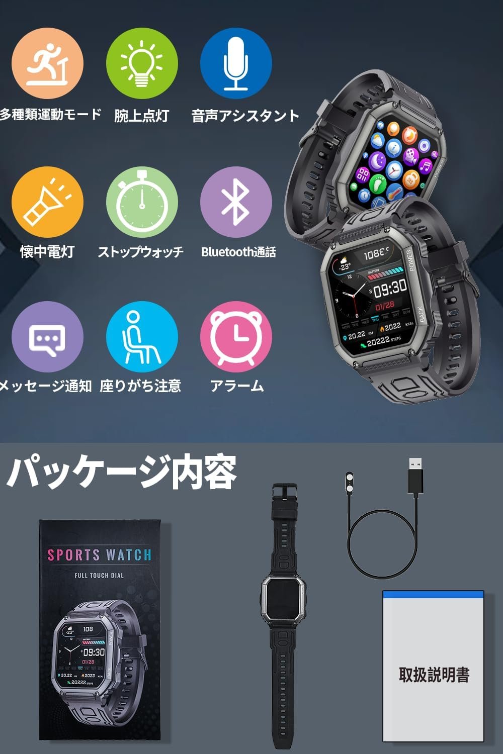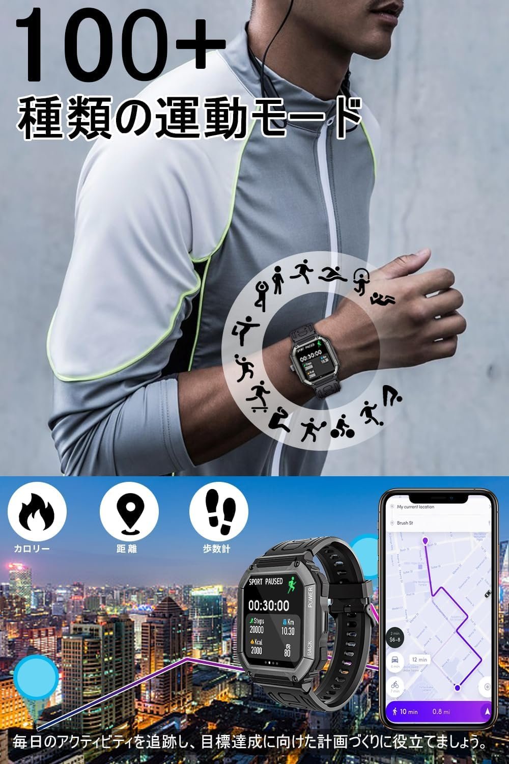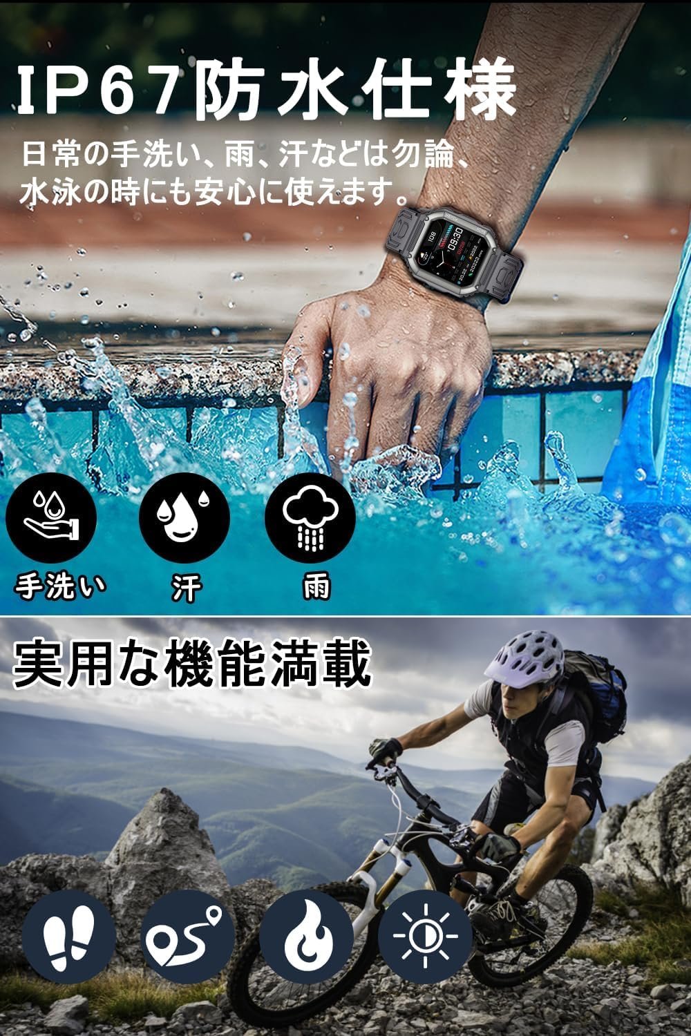 Smart Watch(2024 Evolution Model、Military Standard&Waterprof、Dustproof、Shock-Resistant)、1.8インチ高精度スクリーン、Bluetooth 5.3呼び出し機能、IP67防水、ほこり、長期