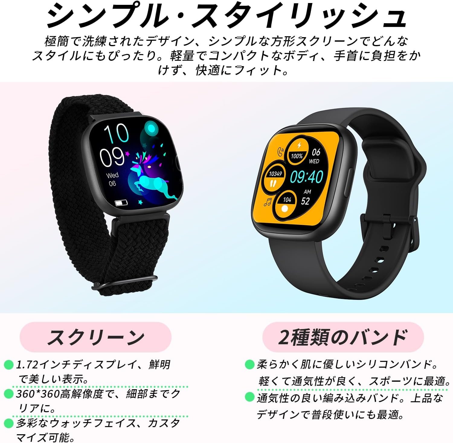 Smart Watch(2025 Newリリース、ダイナミックアイランドを備えた2種類のベルト)、1.72インチHD大画面、Bluetooth 5.3通話、着信コール/ラインのアプリ通知、iPhone互換、Android