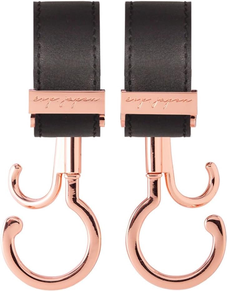 Expjapon E-BGH09PGバギーフック、PKG-シンセティックレザー、ブラック、360°スイベル、ダブルフック、ベビーカーストレージフック、負荷容量約132.0ポンド(60 kg)、2個