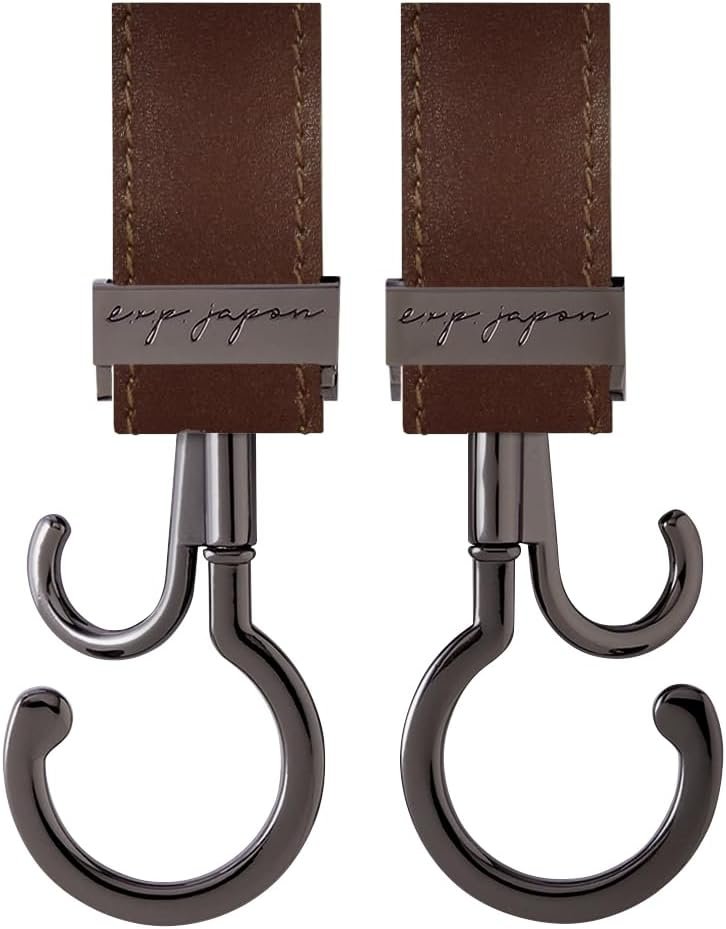 Expjapon E-BGH11BKバギーフック、BKフェイクレザーブラウン、360度回転、ダブルフック、ベビーカー荷物フック、負荷容量:約132.3ポンド(60 kg)、ベビーカーフック、2のパック