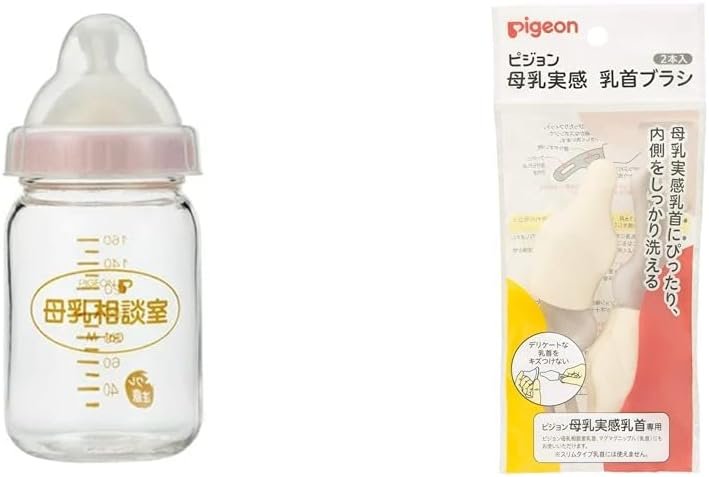 Pigeon Tobutani Style Direct Nursing Training、母乳相談室、ベビーボトル、5.3 Fl Oz(160 ml)、0か月、耐熱ガラス、SSサイズ(丸い穴)、乳首が含まれている、透明、1ピース