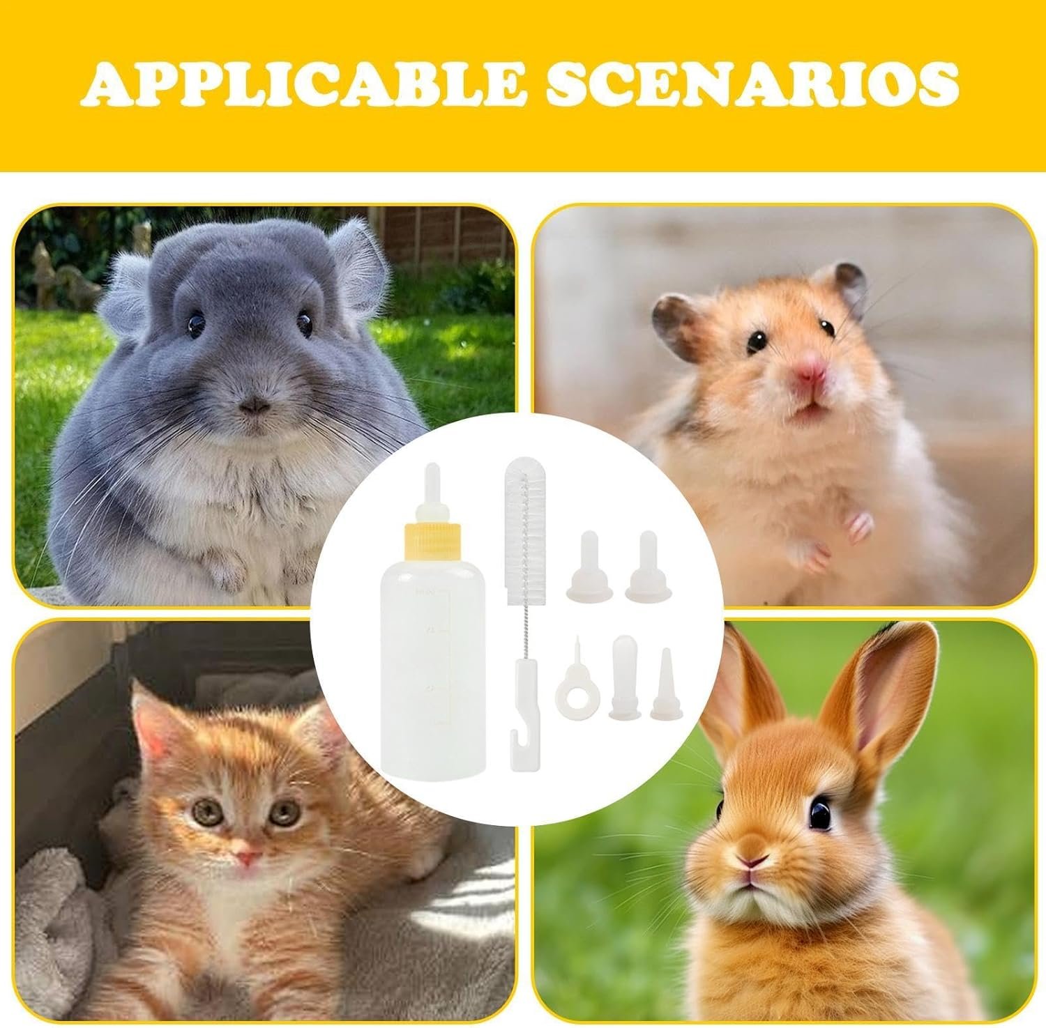 幅広いアプリケーション:私たちの哺乳瓶キットは、子犬、子猫、小さなペットの健康的な成長の旅を保証します。モルモット、フェレット、ウサギ、アライグマなどに最適です。徐々に成長することは適切な給餌を促進し、健康問題を防ぎます