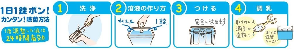 哺乳瓶(ガラス、プラスチック)と乳首(シリコンイソプレンゴム)を消毒するため。