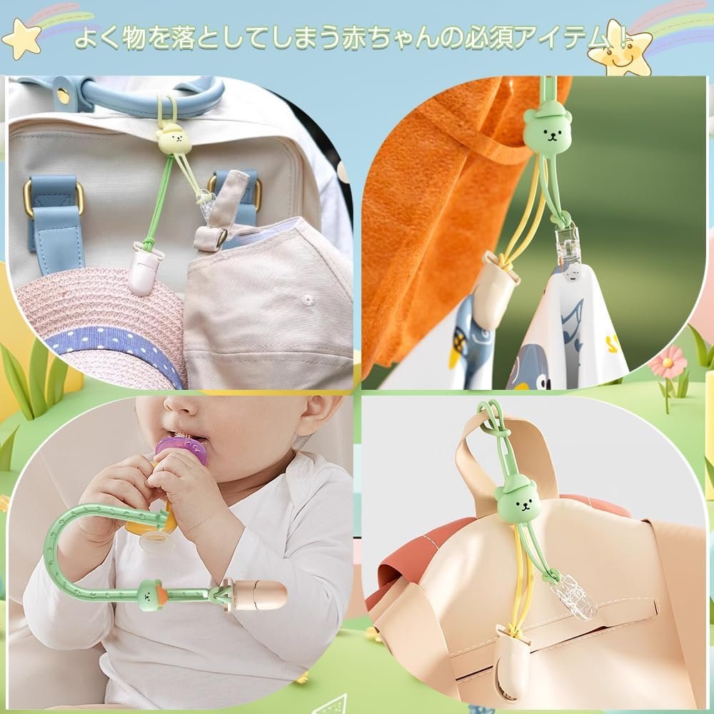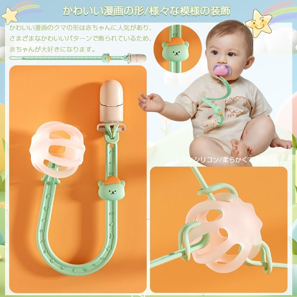 2つのかわいいクマの形、愛らしい、ファッショナブル:おしゃぶりチェーンとハットクリップチェーンは、どちらもシンプルでかわいい漫画のベアの形で設計されています。柔らかくてかわいい外観は、赤ちゃんの注意を引き付けるだけでなく、さまざまなバッグと簡単に合わせることができ、目を引くだけでなく、旅行にも実用的です