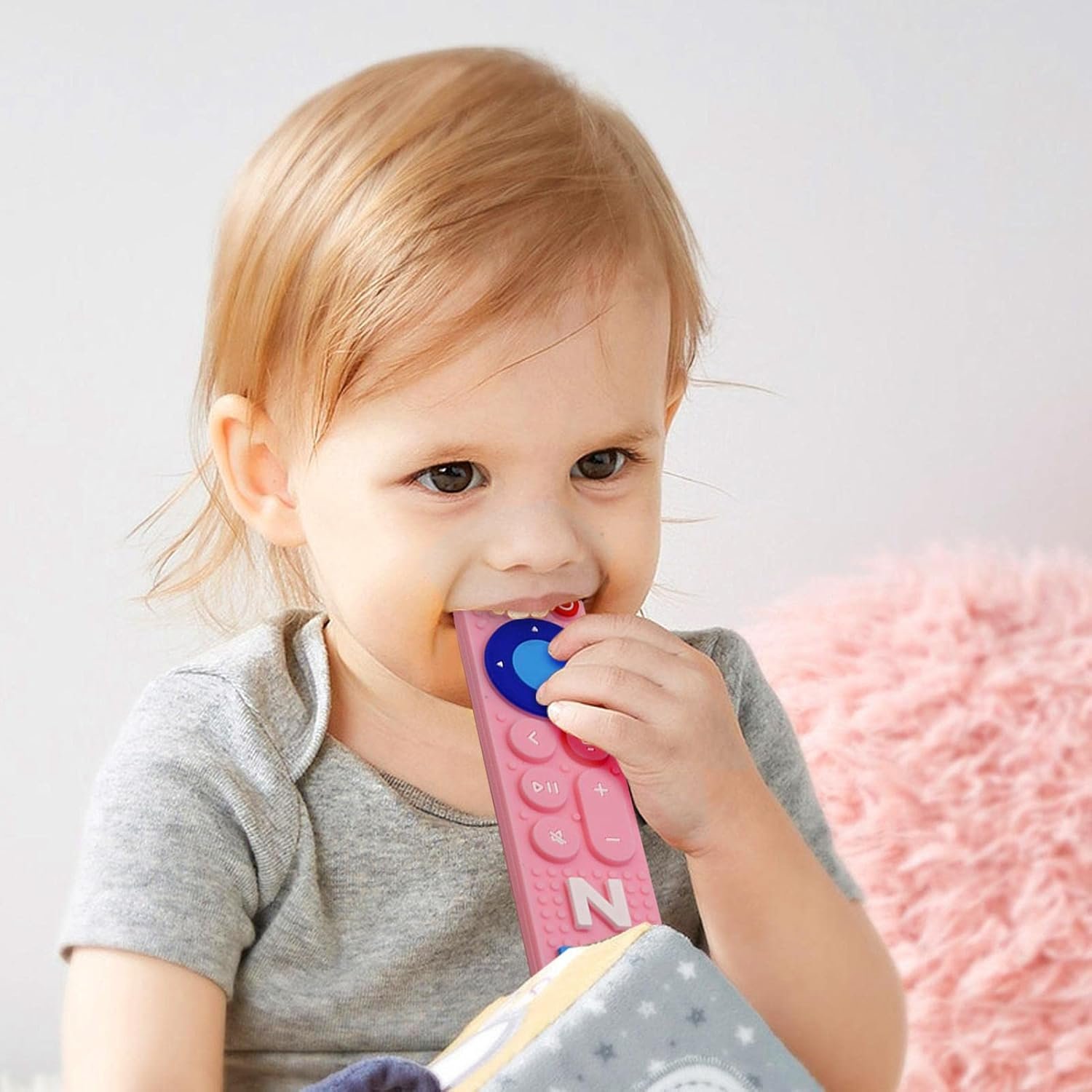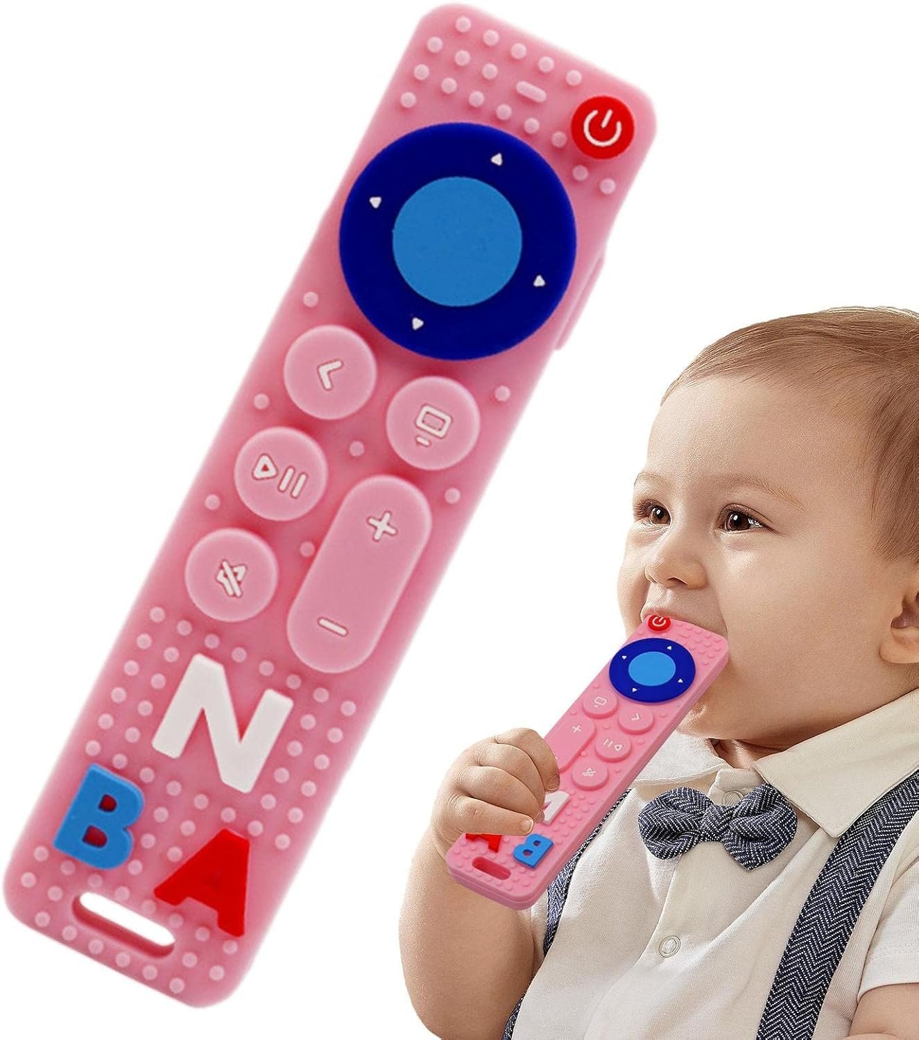 このチューインのおしゃぶりのおもちゃは、シミュレートされたテレビリモコンの形で設計されており、実際のリモコンから遠ざけられています。