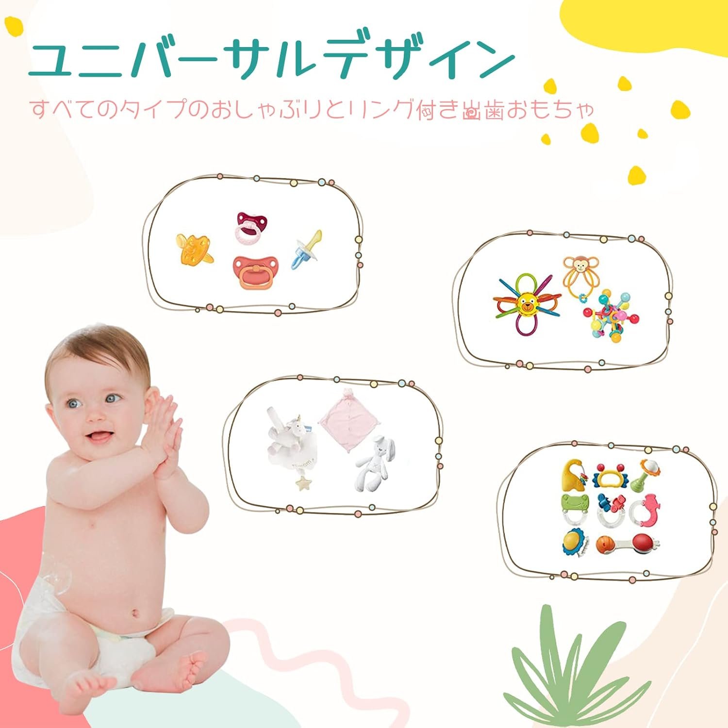 ユニバーサルフィット:ほぼすべてのおしゃぶり、歯、すっくりとフィットし、おしゃぶりを清潔に保ち、赤ちゃんの近くに保ちます
