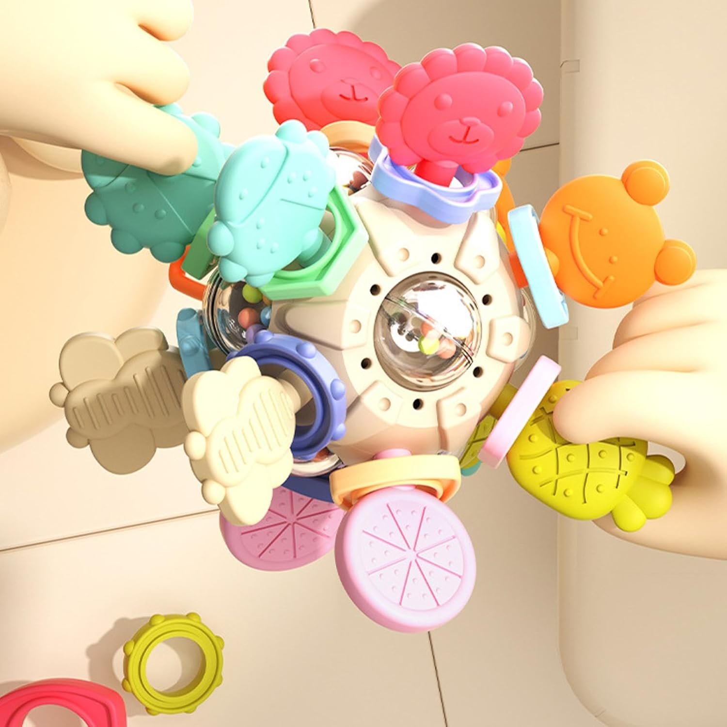 安全な構造:食品グレードの柔らかいラバー、PP、PCで作られたこの楽しく安全な歯が生えるおもちゃを楽しむためにあなたの小さなものを準備してください、この頑丈で多機能的な感覚おもちゃはあなたの好奇心と冒険的な12歳に最適です