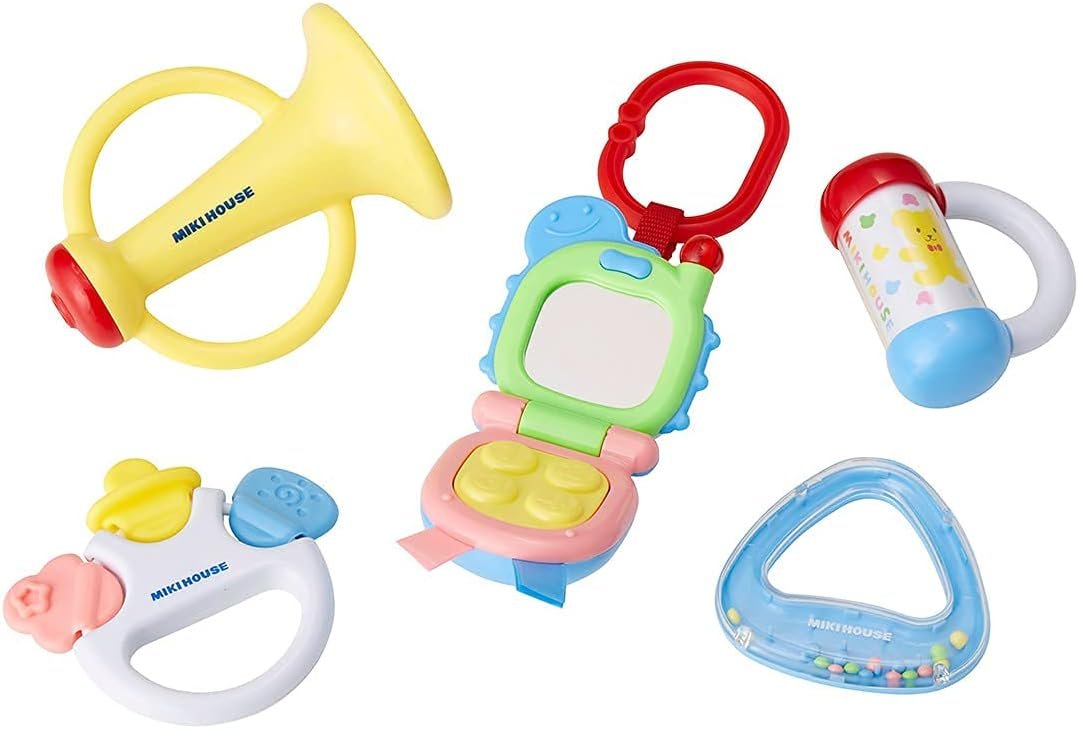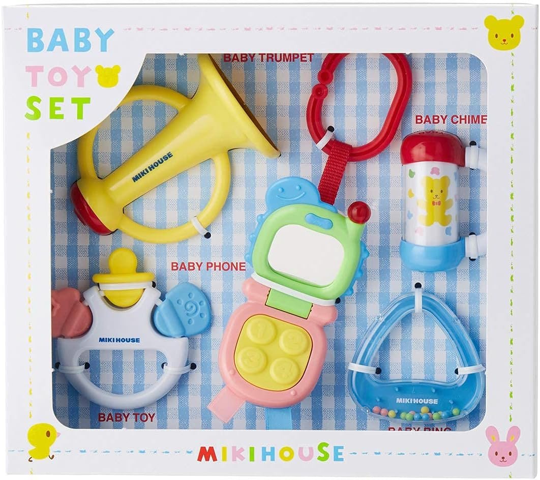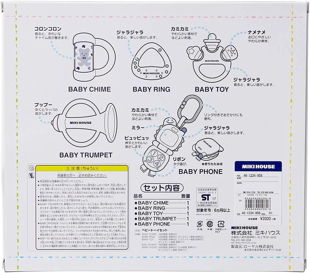 Miki House 46-1234-958赤ちゃんのおもちゃセット、箱入りおもちゃ、ガラガラ、おしゃぶり、赤ちゃんのおもちゃ、赤ちゃんのおもちゃ、男の子、女の子、赤ちゃん、子供、子供、白人