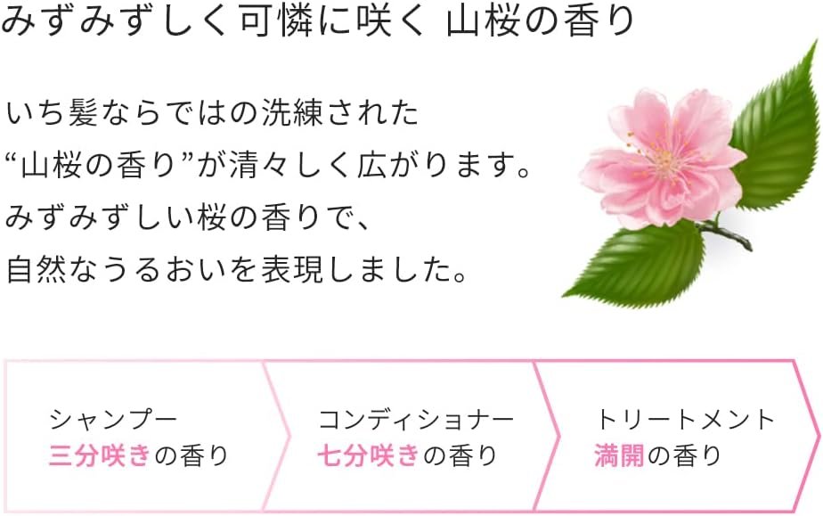 桜が開いて日本中に待っている瞬間に焦点を当てた香り:新鮮でかわいい、甘い山の桜の香り。シャンプー [Triple Blooming Scent]>コンディショナー [3/4 Blooming Scent] 処理 [Fragrance in Full Bloom] そして、香りは徐々に咲きます