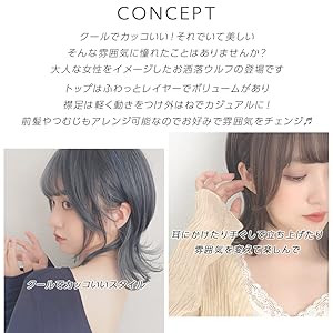 製品の説明:髪全体に重ねられた長くて短いスタイル。顔の領域はあごのラインで短く、軽いので、根を手で簡単に上げることができます。髪の端を軽くブラッシングして、クールでカジュアルなスタイルのスプラッシュを作成することによって。前髪には、着やすく着やすいスタイルの自然な前髪があります。さらに、サイドの前髪は、顔をきちんと見せて顔を覆うように作られています。また、顔を小さく見せるため、丸い人と精巧な人の両方にお勧めします。混合色、グラデーション、内側のハイライトなど、さまざまな色があります。キラキラした髪を目指したり、髪型の基本的な色を楽しむことができます。 7色から選択してください