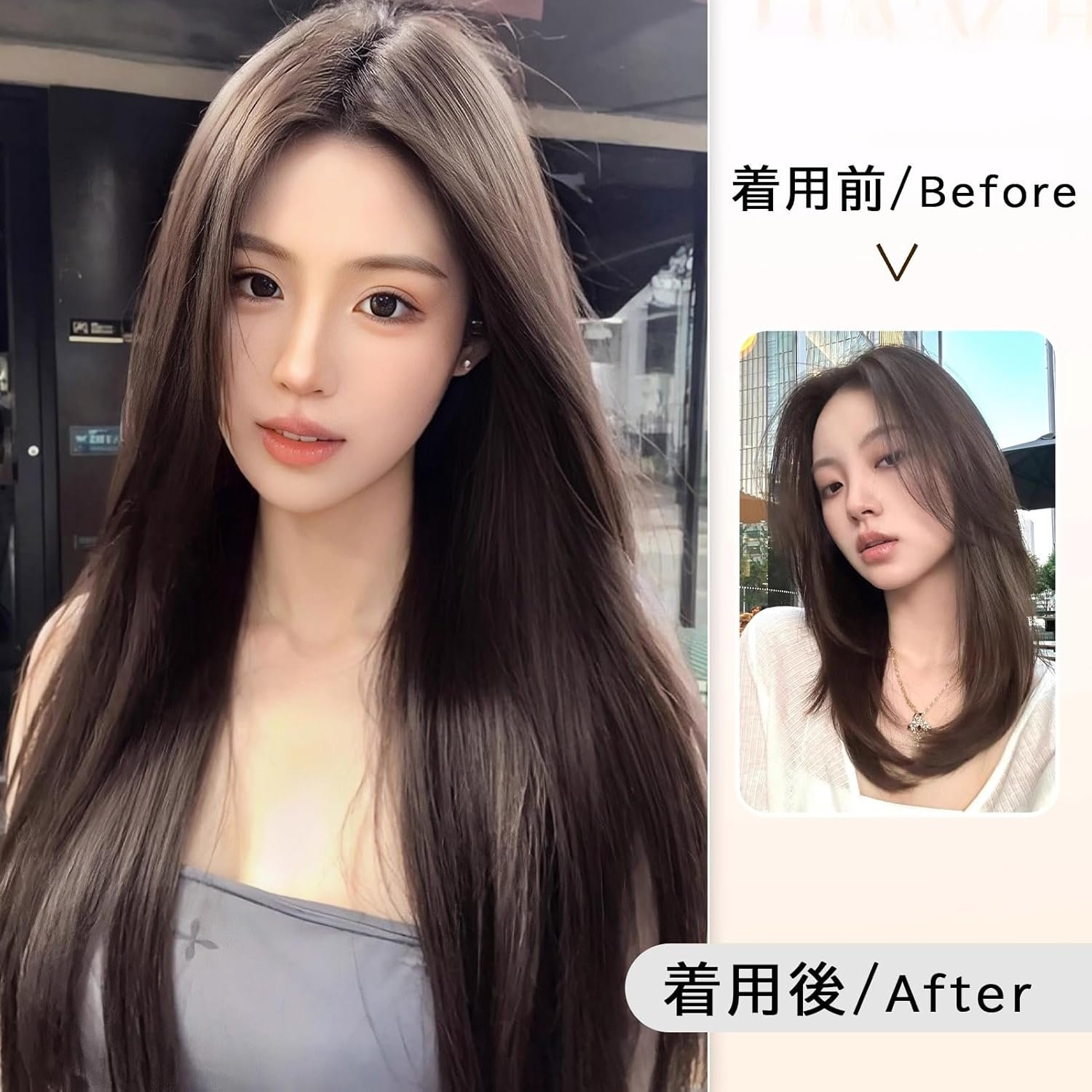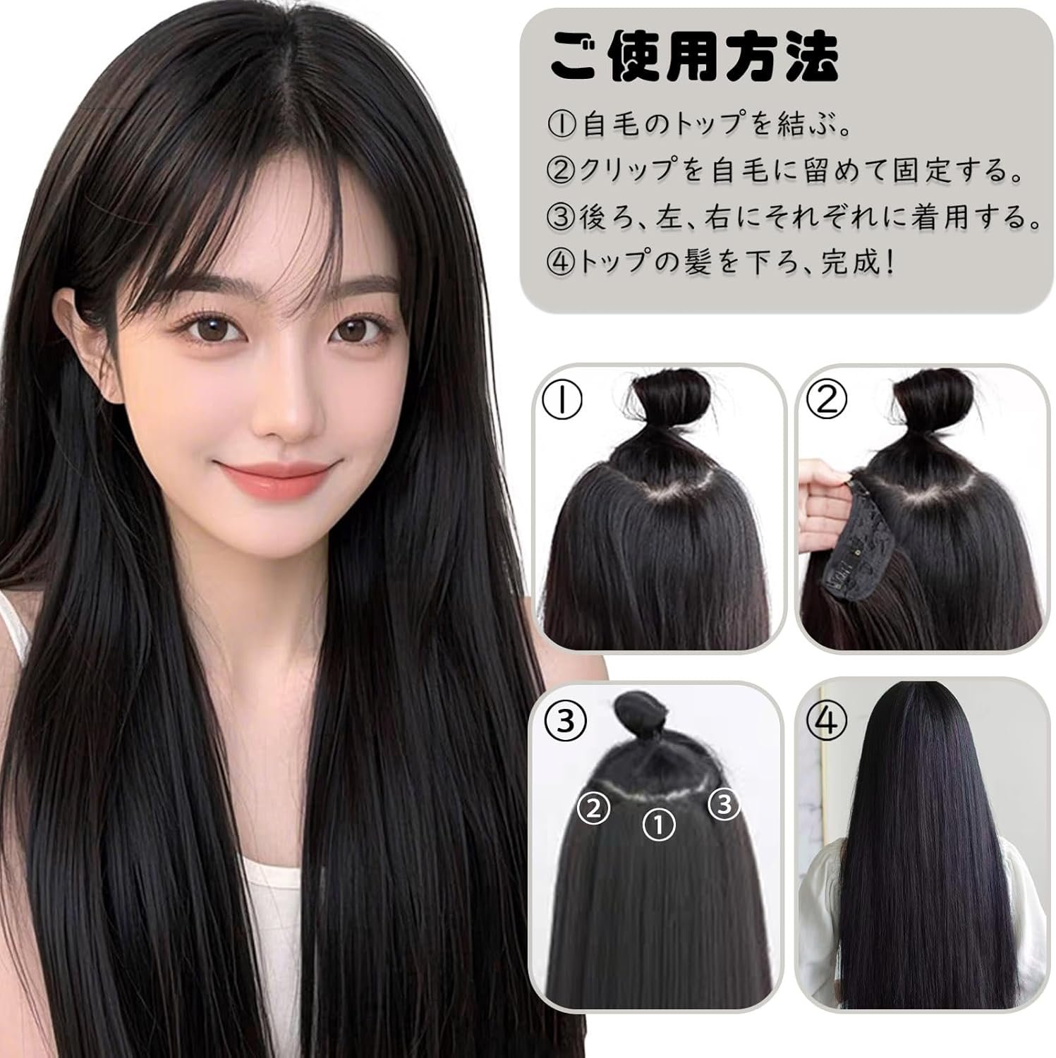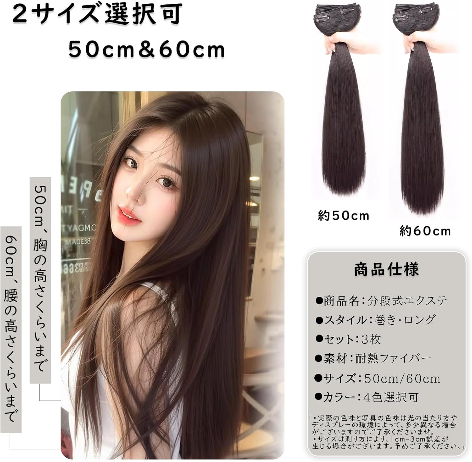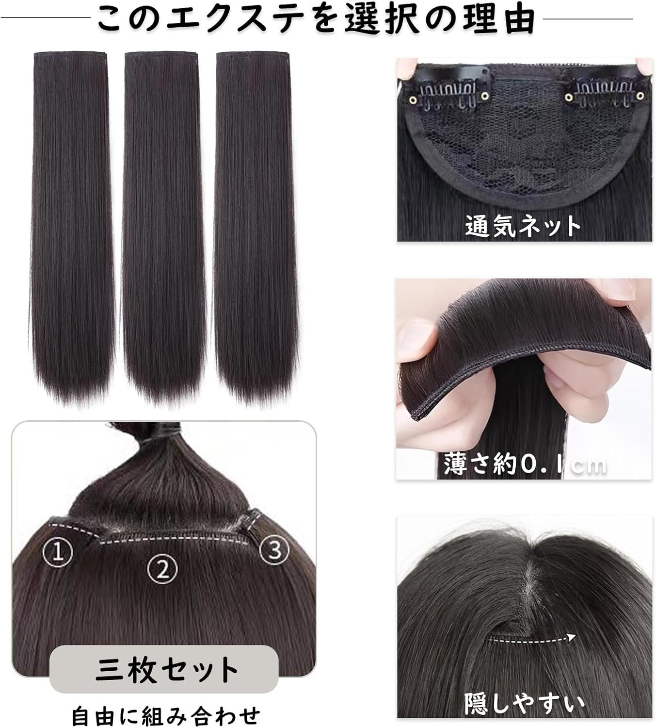 ヨーコーセンヘアエクステンション、カラーレスウィッグ、ワンタッチエクステンション、ストレートロング、3つのセット、ハーフウィッグ、ヘアエクステンション、女性の髪の拡張、ポイントウィッグ、延長、クリップタイプ、摩耗しやすい、自然な部分