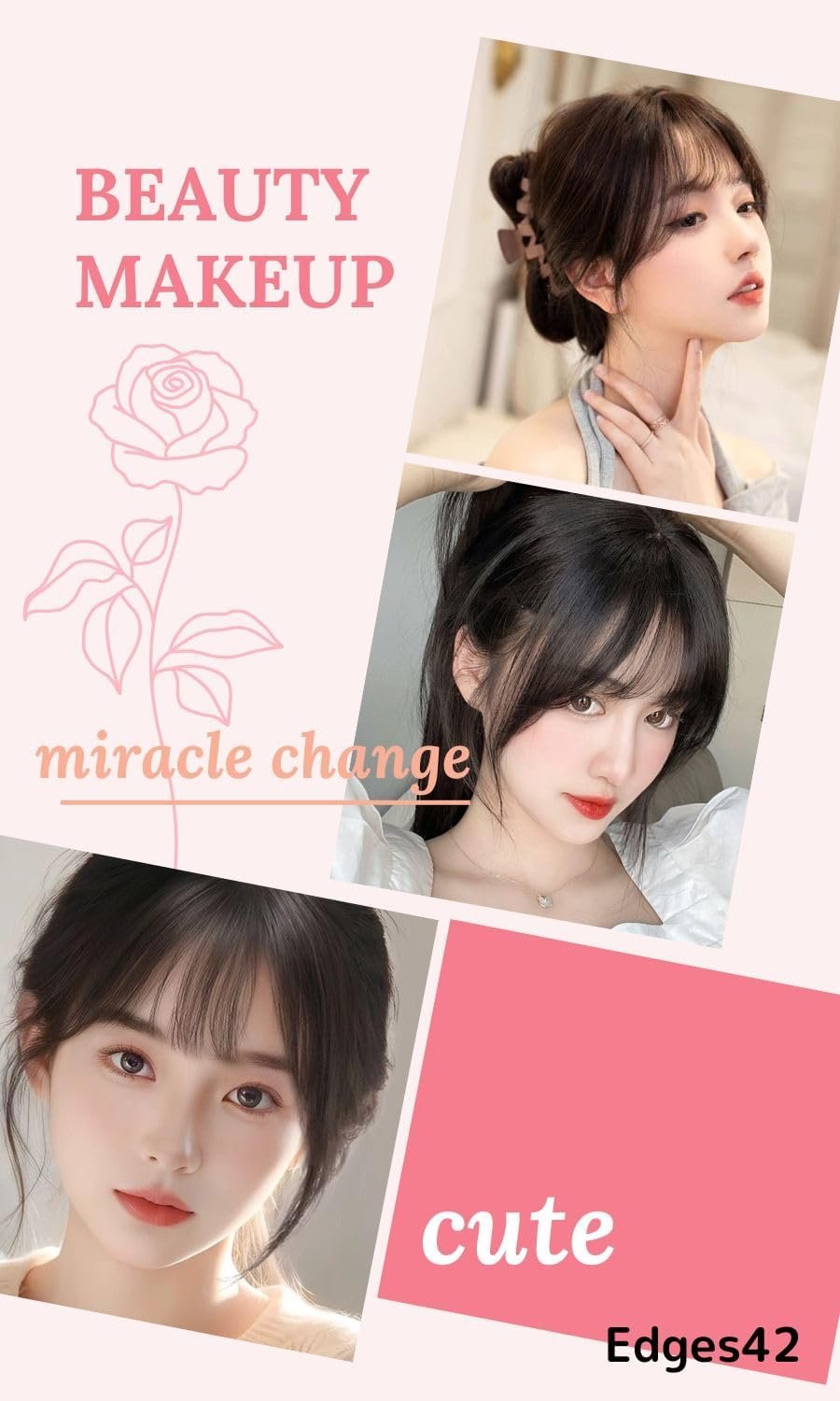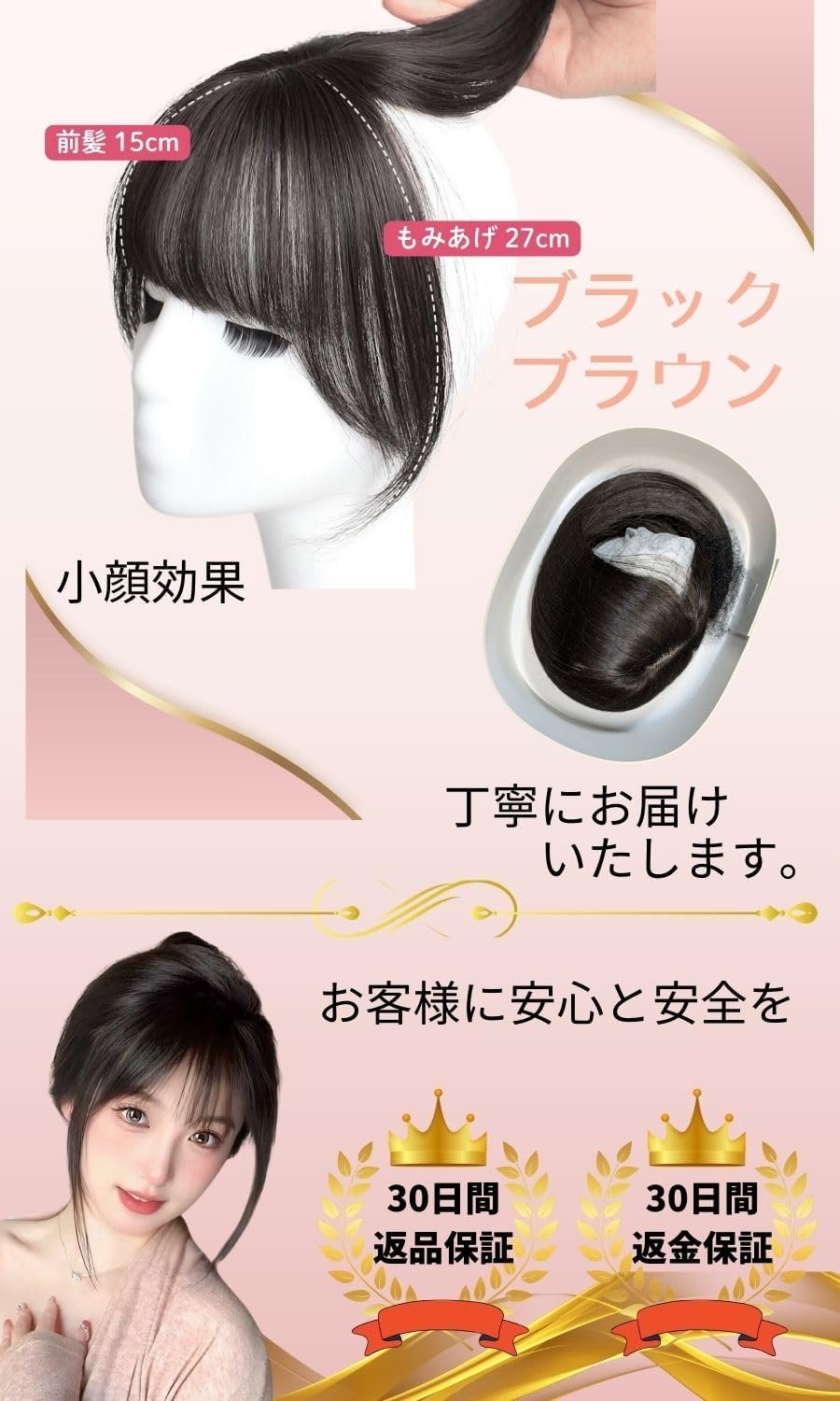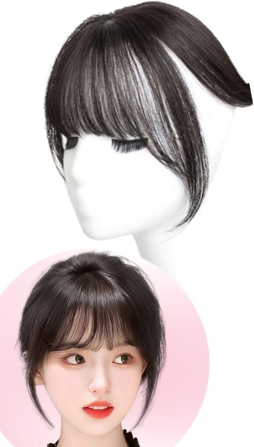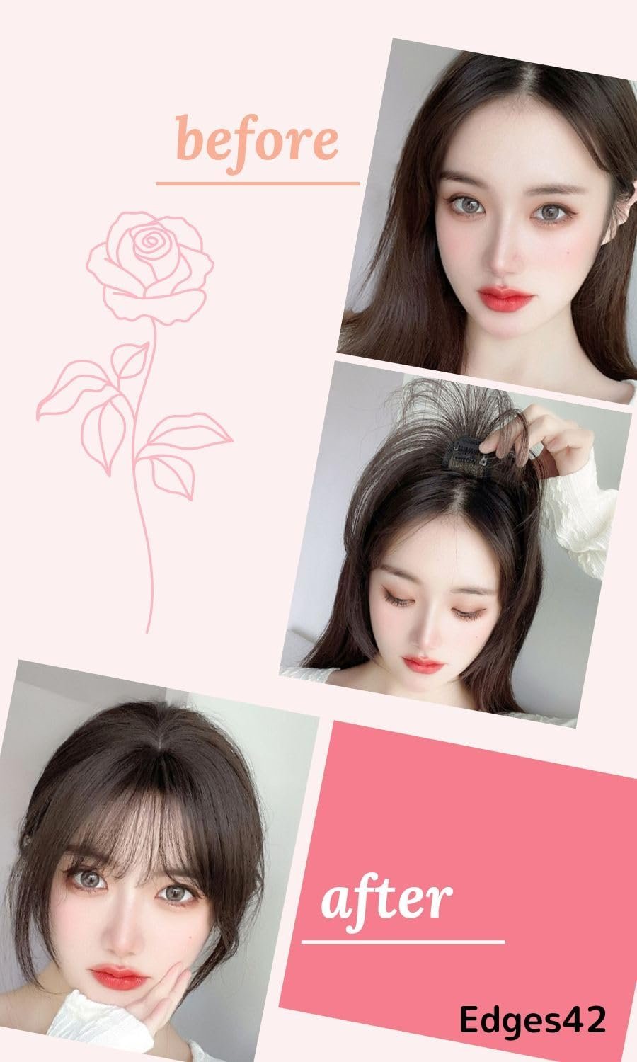 Edges42前髪ウィッグ、部分ウィッグ、ヘアピース、ポイントウィッグ、前髪、自然、バレ、ヘアエクステンション(ブラックブラウン)