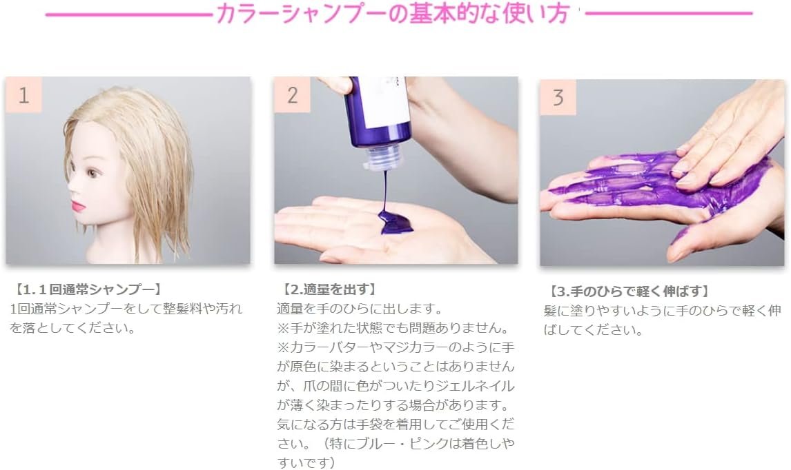 現在、青色のシャンプーは、紫、銀、ピンク、ミルクティーの4色で利用できます。私たちは、青い髪を濃い青色に保つのにも効果的です。青い髪を維持するだけでなく、ブロンドと茶色の髪の味を落ち着かせるのにも効果的です。