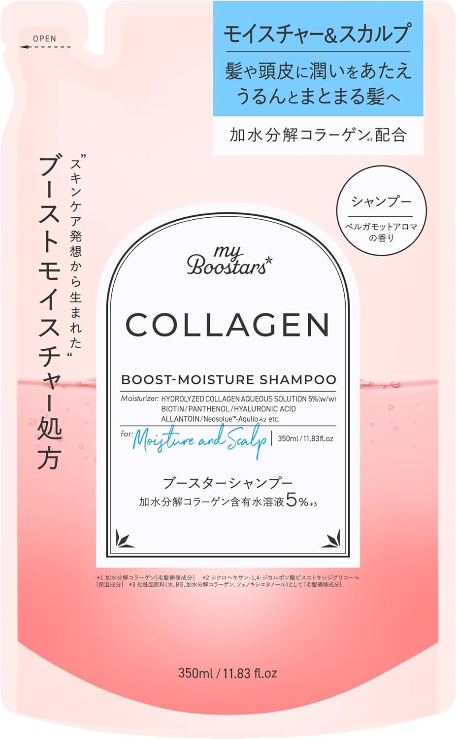 私のブースターコラーゲンシャンプー、詰め替え、11.8 fl oz(350 ml)、頭皮&水分、myboostars