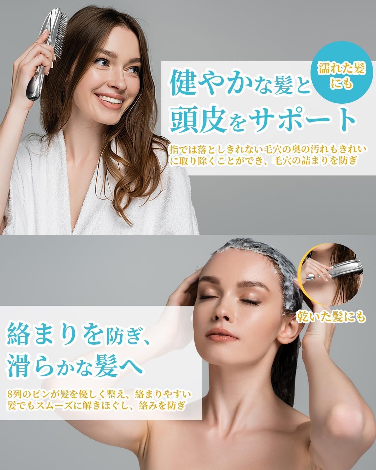ヘアケアだけでなく、頭皮:頭皮のカールに完全に収まるように設計されているため、頭皮を離れることなく頭の上部から頭の先端にブラシをかけることができ、驚くべき頭皮マッサージ体験を提供します。長期使用後でもパフォーマンスを維持します。さらに、腹筋に耐久性のあるブラシは、長い使用後でもパフォーマンスを維持します