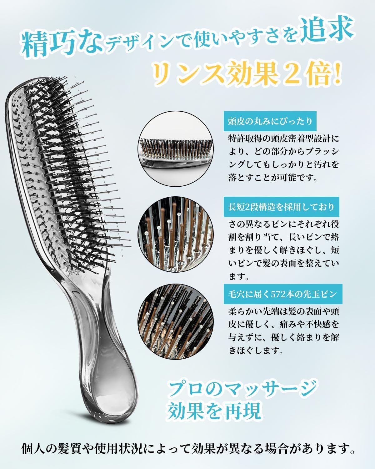 (2層のピンを簡単に緩めるためのピン)572密度のピンは、詳細な計算に基づいて配置され、2段階の長い短い構造を採用しているため、最後まで櫛を簡単にクリーンアップできます。さらに、大量の髪を持っている人でさえ、1つのブラシで髪を効率的に調整することができます。これにより、時間が大幅に短縮されます。