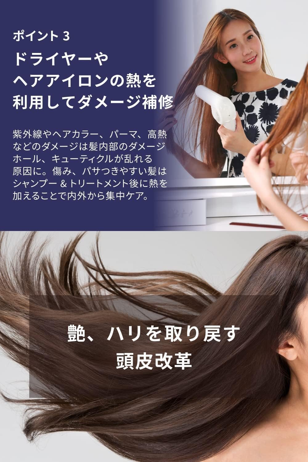 3ポイントの熱保護、保湿、髪の修理から髪を向けるシャンプートリートメントは、髪を輝かせる髪の画像を作成します。受信する熱の力を使用するヒートガードは、髪を熱から保護する保護膜を形成します。ヒアルロン酸とコラーゲンの処方は、髪を湿らせ、輝かせます。フォーミュラは約1分で浸透し、髪の内側からの損傷を修理します。さらに、髪の表面は、髪の内側と外側からの損傷をケアするために保護膜を形成します。髪の毛やヘアドライヤーを毎日使用している人のために。