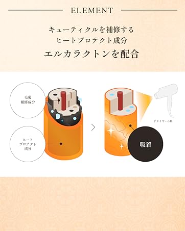 熱保護成分のエルカラクトンは、乾燥機や鉄などの熱に反応してキューティクルを修復します。