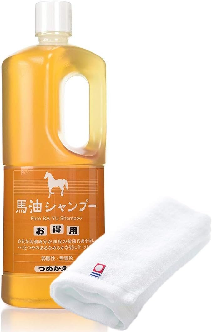 馬オイルシャンプー33.8 fl oz(1,000 ml)と1匹のイマバリタオルウォッシュタオル(材料:100%綿)の補充