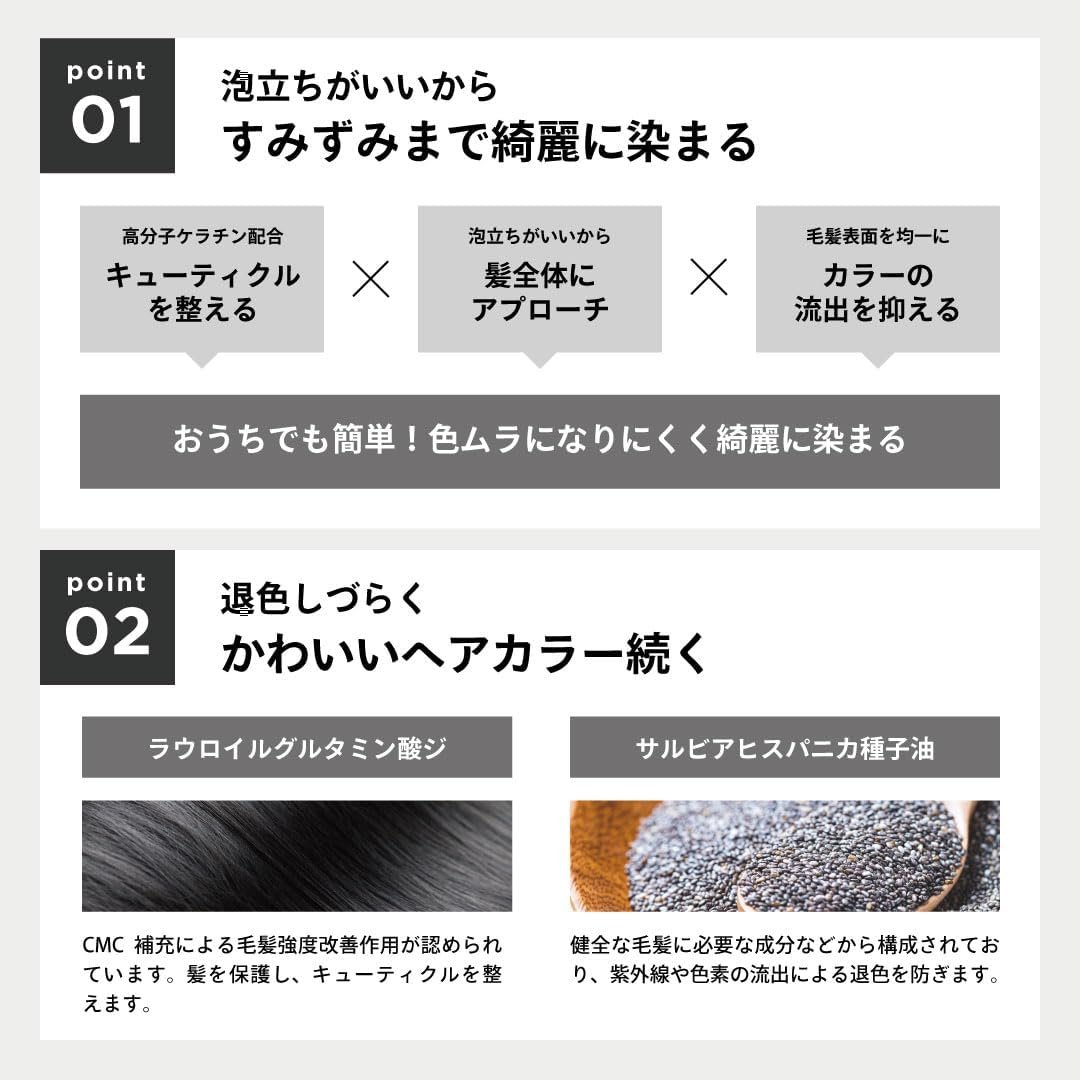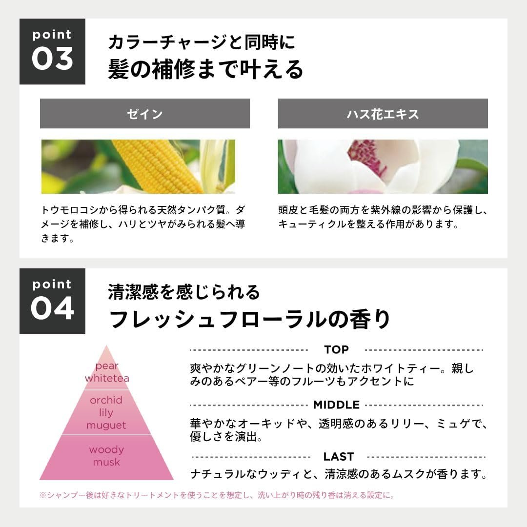 (色の充電と美化同時に)染色するだけでなく、CMCや植物抽出物などの髪の強度を改善する成分も含まれています。