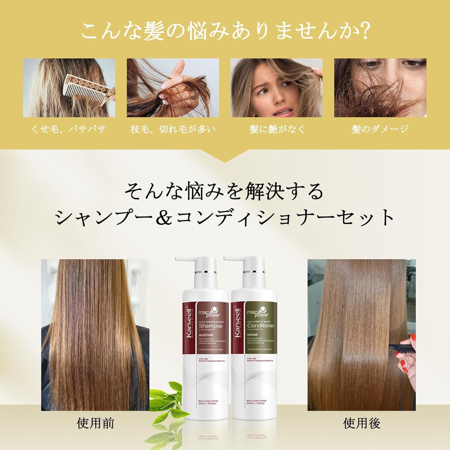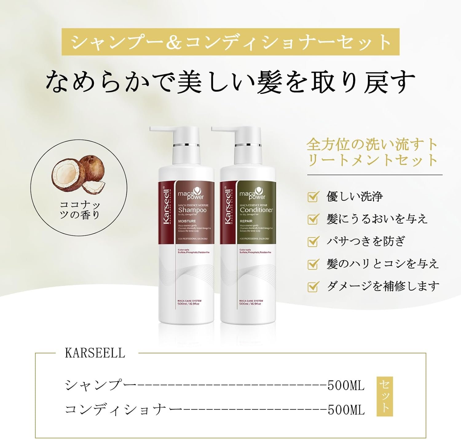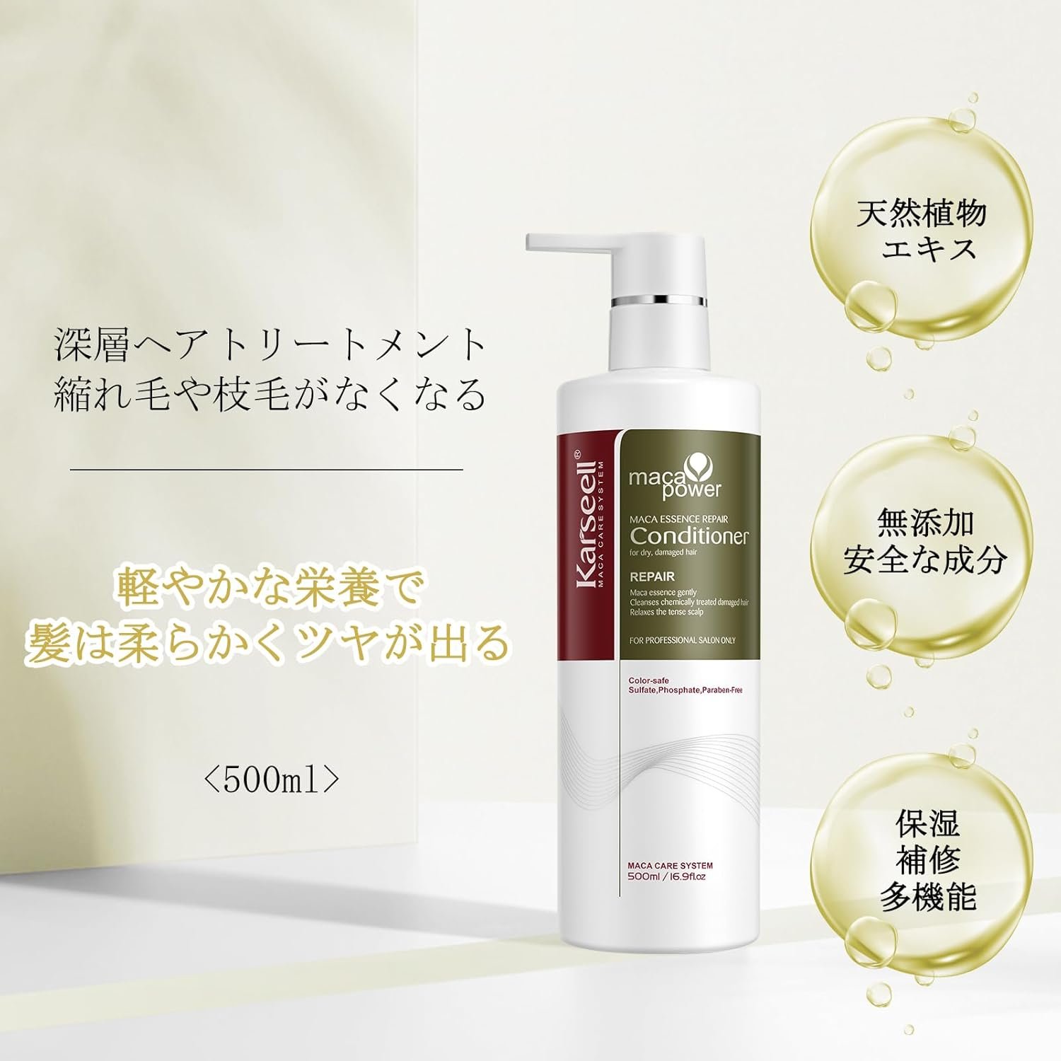 Karseell Conditionerは、損傷した髪を活性化し、髪の構造を再構築し、損傷した髪に深い栄養素を提供し、髪を光沢があり、耐久性があります