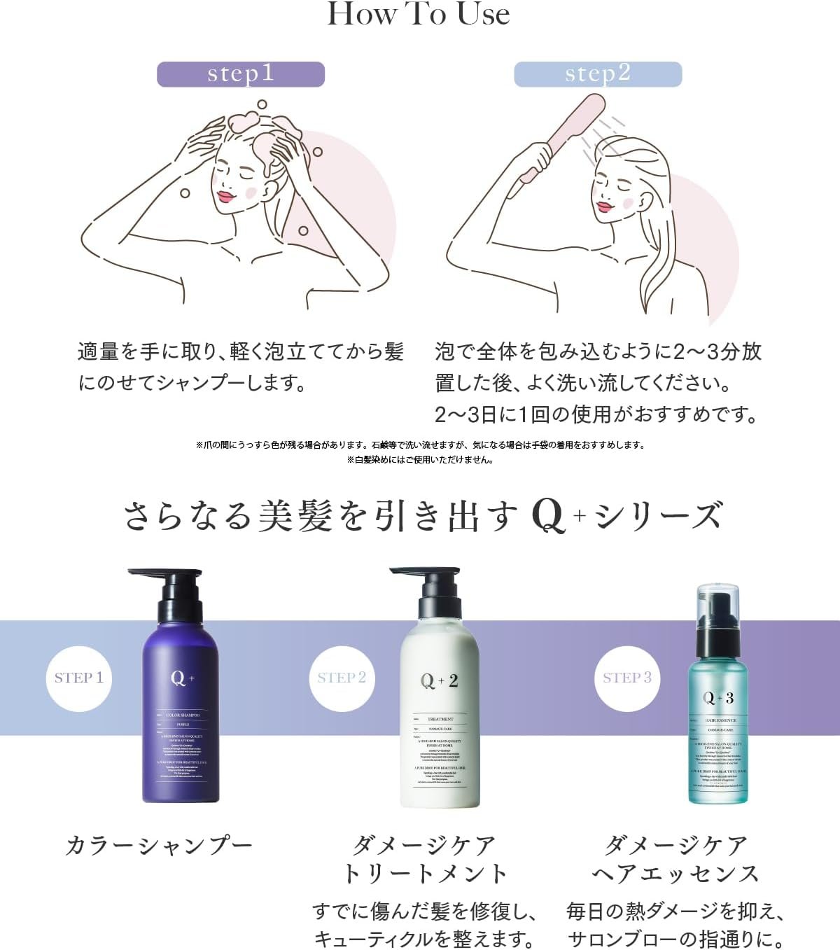 (サロン製の髪の色はそのまま残っています。Q+カラーシャンプー(紫)黄色が簡単な光沢のあるコイル状の髪の毛。洗いながら豪華なケア:「フェードは良くない」、「髪が損傷することを心配」など。 [Suppresses yellowing and increases color retention] 色保持成分の「悪性酸」は、キューティクルを閉じ、色の脱落を防ぎます。豪華なフォームは髪全体を包み、成分を均等に浸透させることができますw修復:W修復式:この製品は、内部(イソステル加水分解された絹)と「表面保護成分(クォータム-33*)」に浸透する修復式です。髪の内側密度を増加させ、パックすることなく光沢のある色につながります。洗練された大人の香り〜フルーティーな花〜上部:リンゴ、ピーチアプリコット、ベルガモット。中央:ペオンローズ、フリージアグリーン。最後:ジャスミン、白い花、ビレ、アイリスムスク